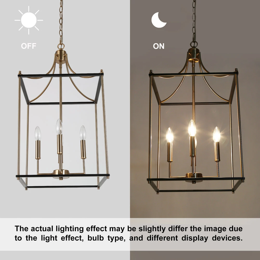 Create an aged vintage look on your living room, bedroom, or kitchen with this unique lantern chandelier. The contrast of polished gold and rustic metallic veneer creates this modern look that underscores the retro-contemporary vibes of your spaces.