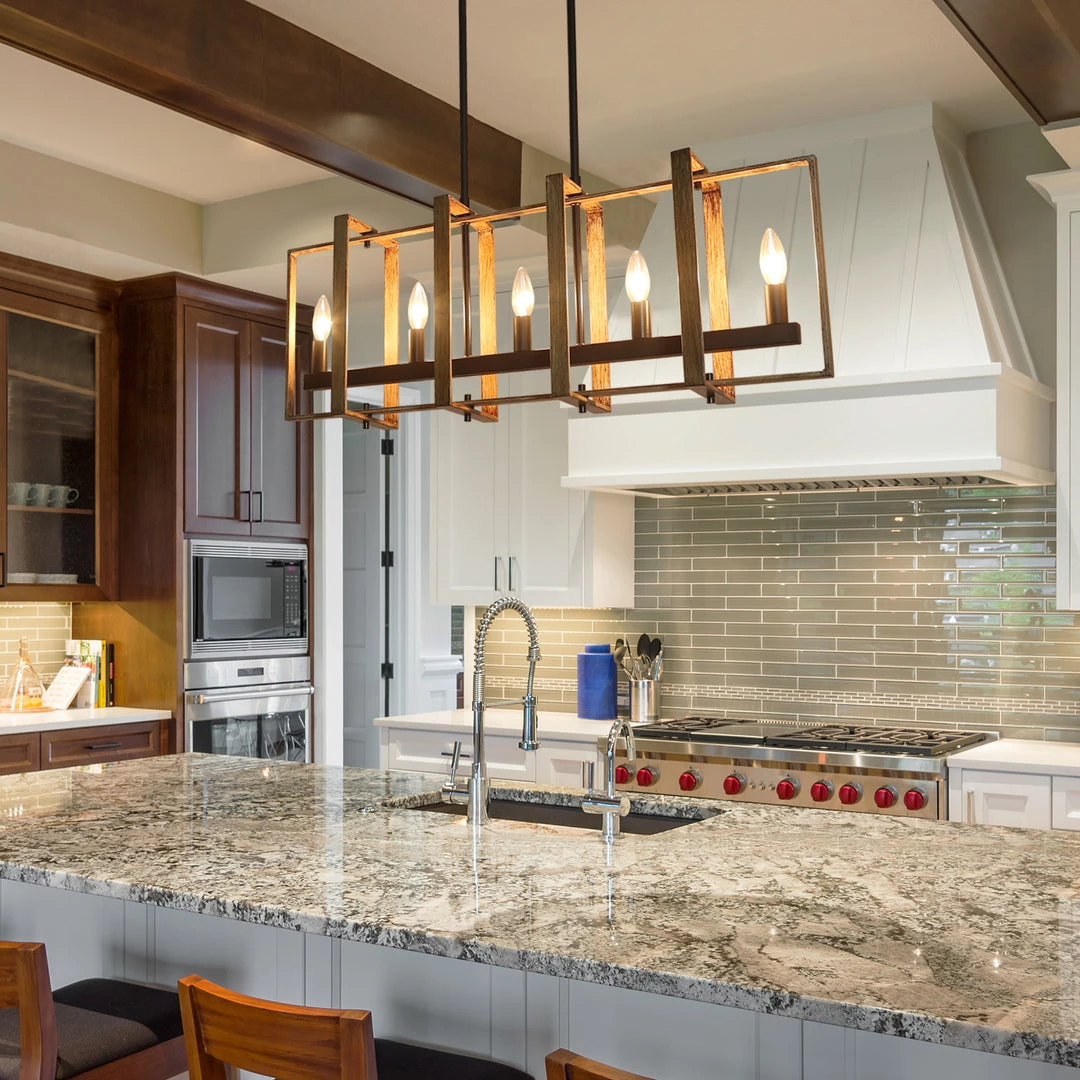 Adding a mid-century modern twist onto a classic style, this kitchen island chandelier is the perfect combination of modernity and industrial style. With the simplistic silhouette and sleek lines, this chandelier shines light on minimalism with the refreshing and clean design. Perfect to be hung over a kitchen island.