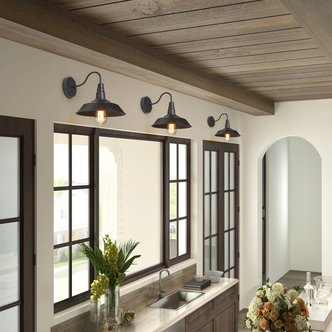 With its gooseneck steel arm design, the wall sconce is classic warehouse lighting for any industrial styled space. The metallic steel dome shade offers an extra dose of industrial style. The polished gooseneck design is the classic design of vintage fixtures adding warm and cozy lighting effects.