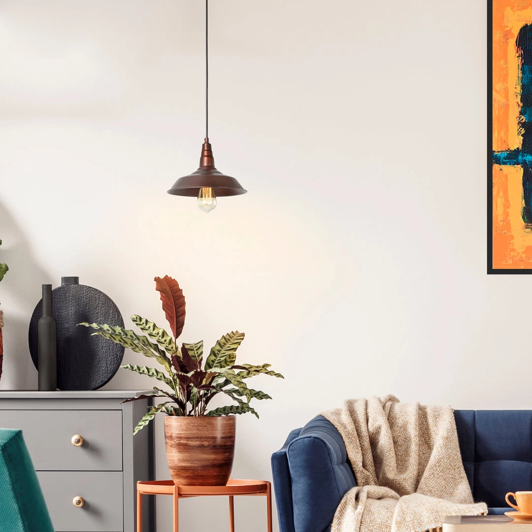 The warehouse bowl pendant meets factory flair with this charming one-light pendant. Featuring a molded bowl shade with a matching canopy, this painted metal design comes with an adjustable down cable and can be hung from straight or slanted ceilings. Its unique and versatile design is an easy complement to a living room, restaurants, or offices.