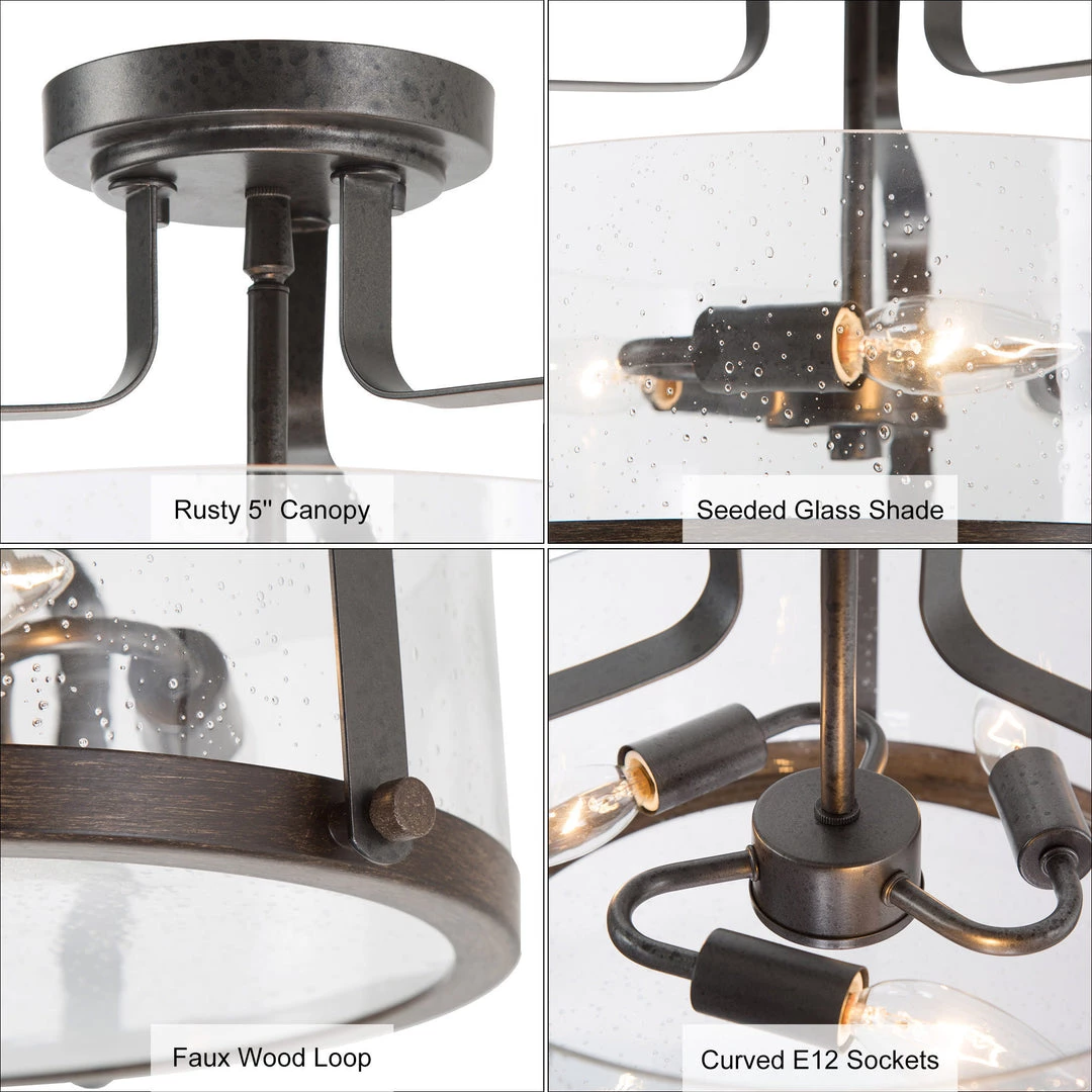 This stunning semi-flush light features a glass circular box with streamlined steel surrounding it. This simplistic design can be easily incorporated into the home design of different styles while matching the other elements naturally. An ideal choice for bedrooms, living rooms, and kitchen island areas.