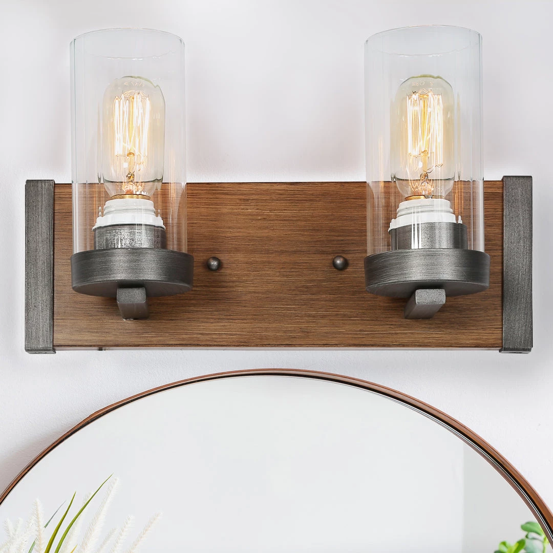 Bring chic rustic-style lighting above your dressing table, or in your bathroom with this 3-light open style vanity! Exposed bulbs are protected by clear glass cylinders and supported by 3 candelabras that are painted in deep dark brown to bring a touch of earthiness and rustic charm to your space.