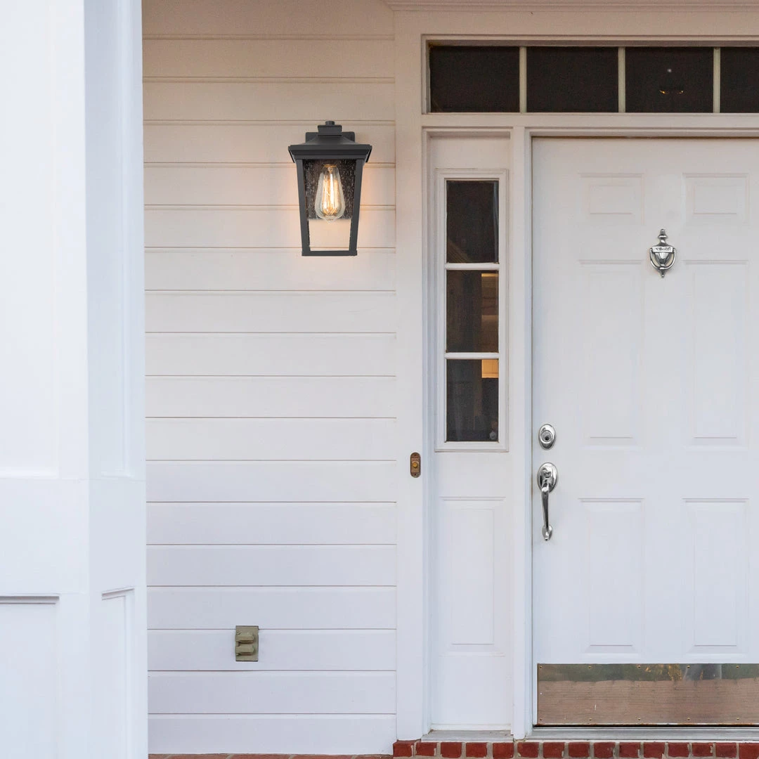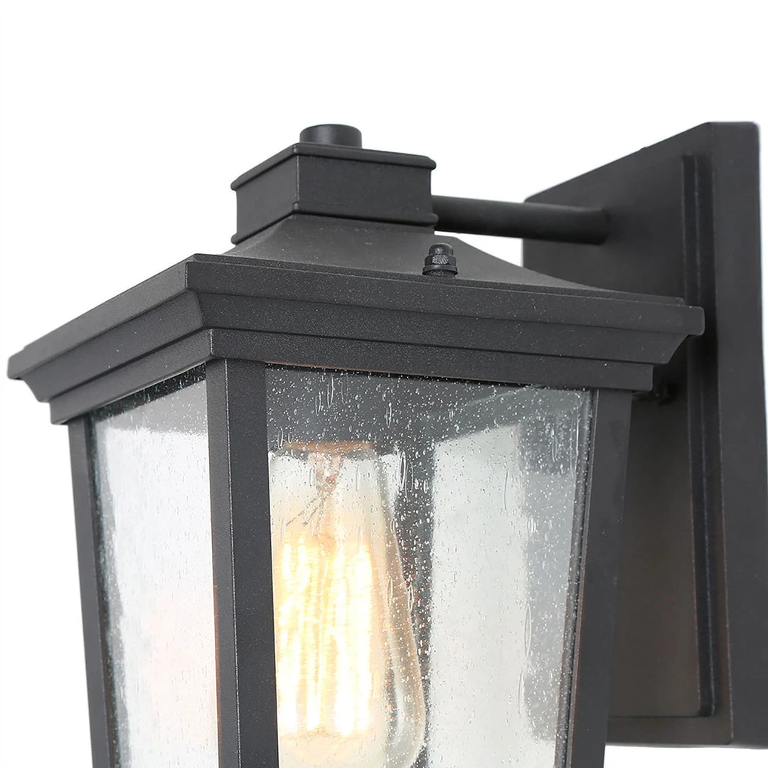 Brighten your outdoor space with this one-light outdoor wall lantern. Made from iron and glass in a charming weather-resistant black finish. With its lantern design and understated silhouette, this understated one-light outdoor wall sconce adds a timeless touch to your alfresco aesthetic.