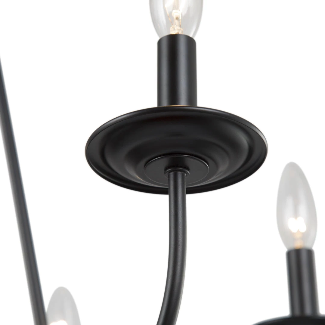 Simple and modern style emanates from a traditionally influenced form with bent rods scatter and gracefully stretching upwards. Simple & elegant, this chandelier has a classic appeal that commands attention and transitions timelessly.