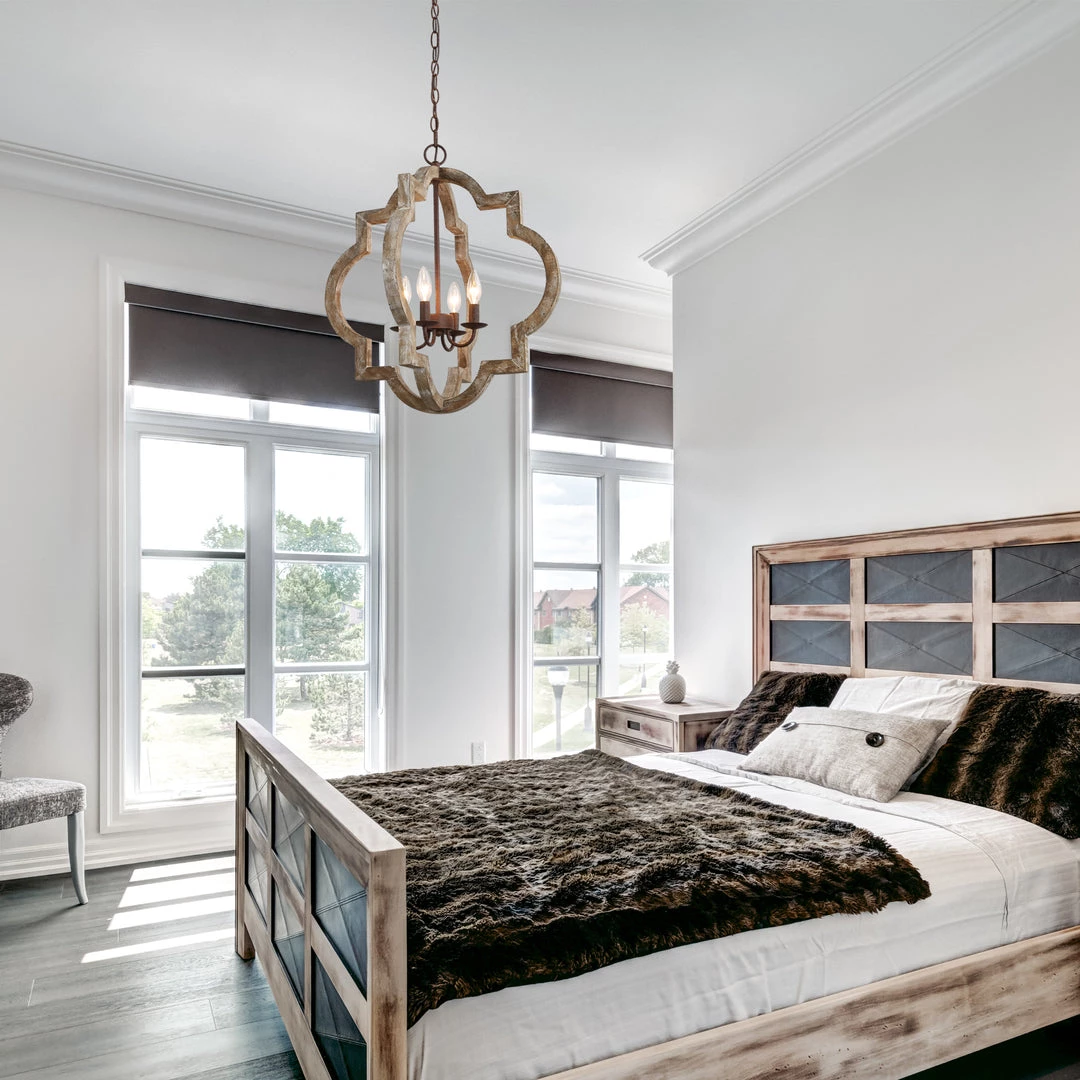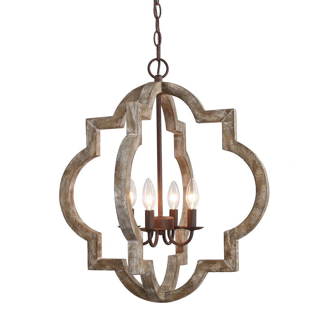 This is a pendant that is full of farmhouse and rough charm. Carved out of natural wood, the frame is crafted with a rustic touch. With an open design, it allows ample and unhindered light. Perfect for over kitchen island area, and living room.