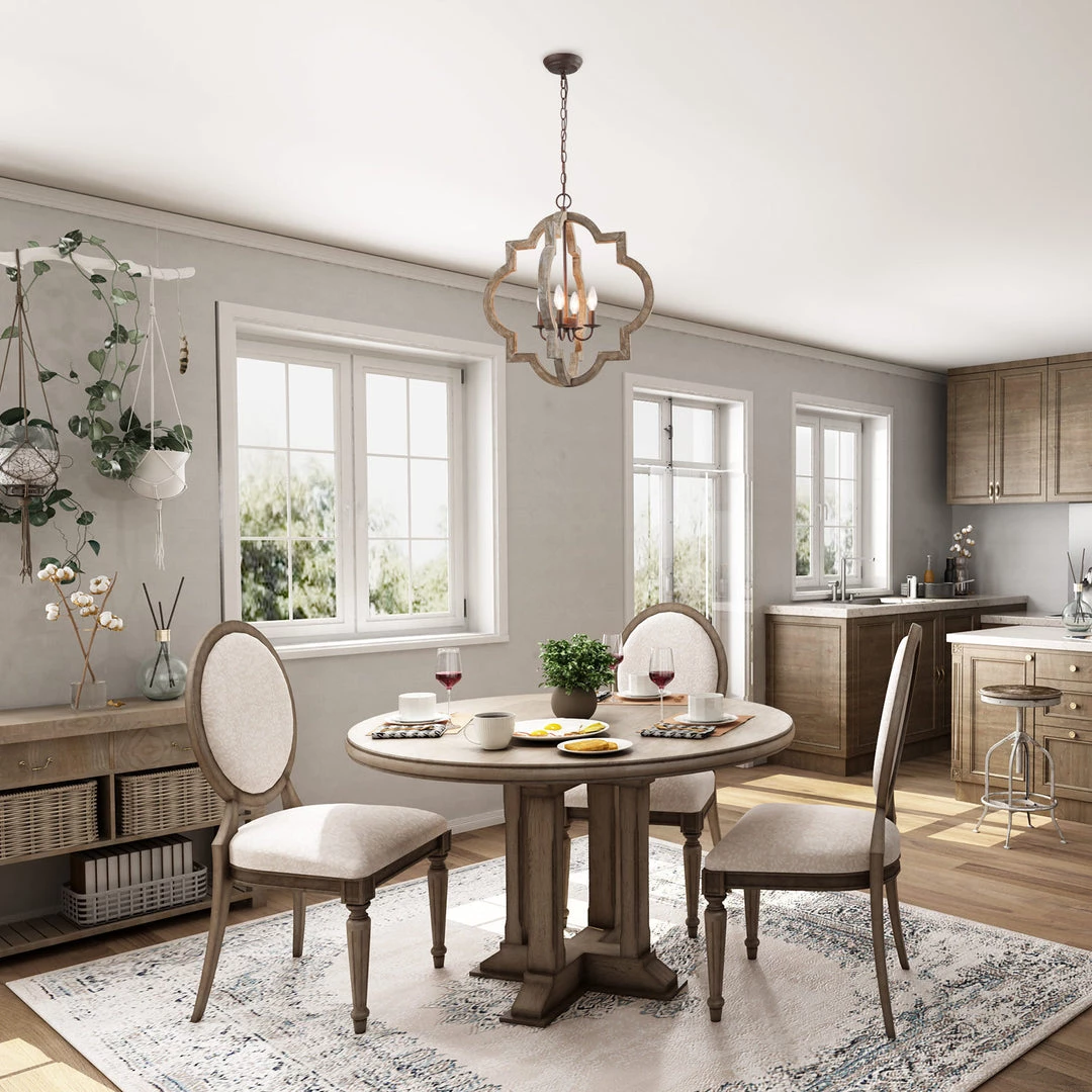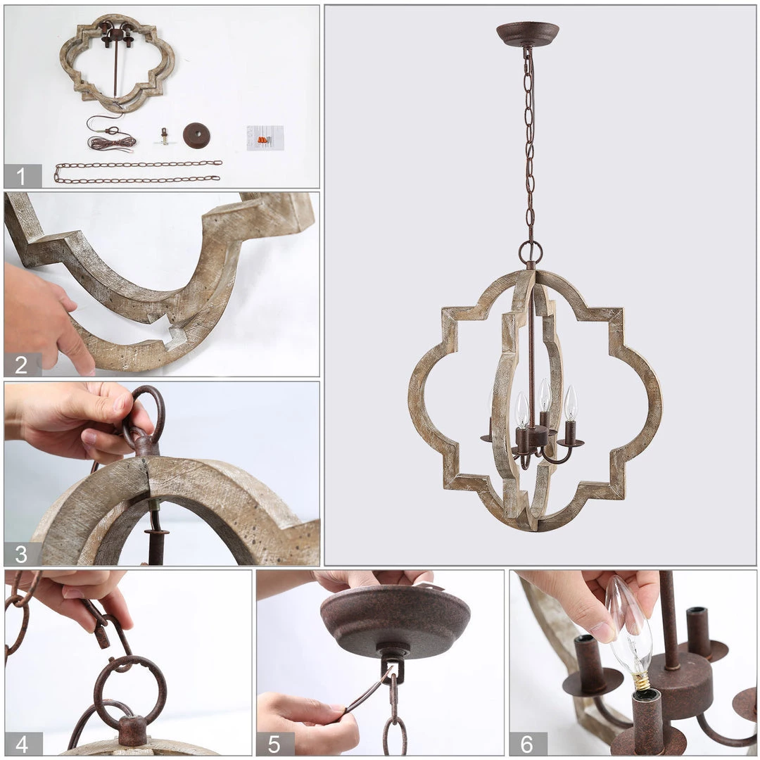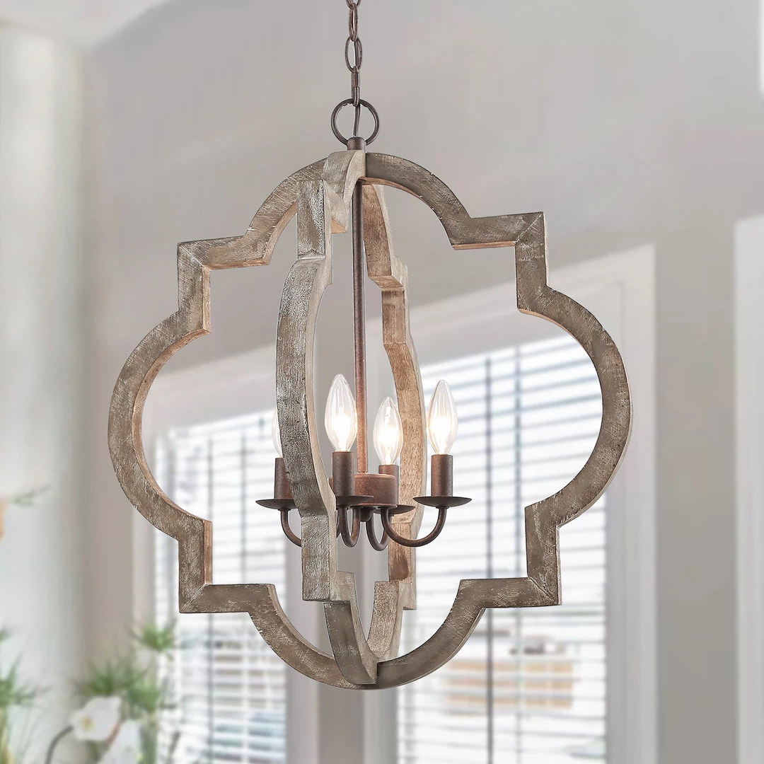This is a pendant that is full of farmhouse and rough charm. Carved out of natural wood, the frame is crafted with a rustic touch. With an open design, it allows ample and unhindered light. Perfect for over kitchen island area, and living room.