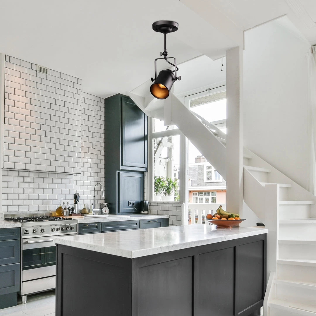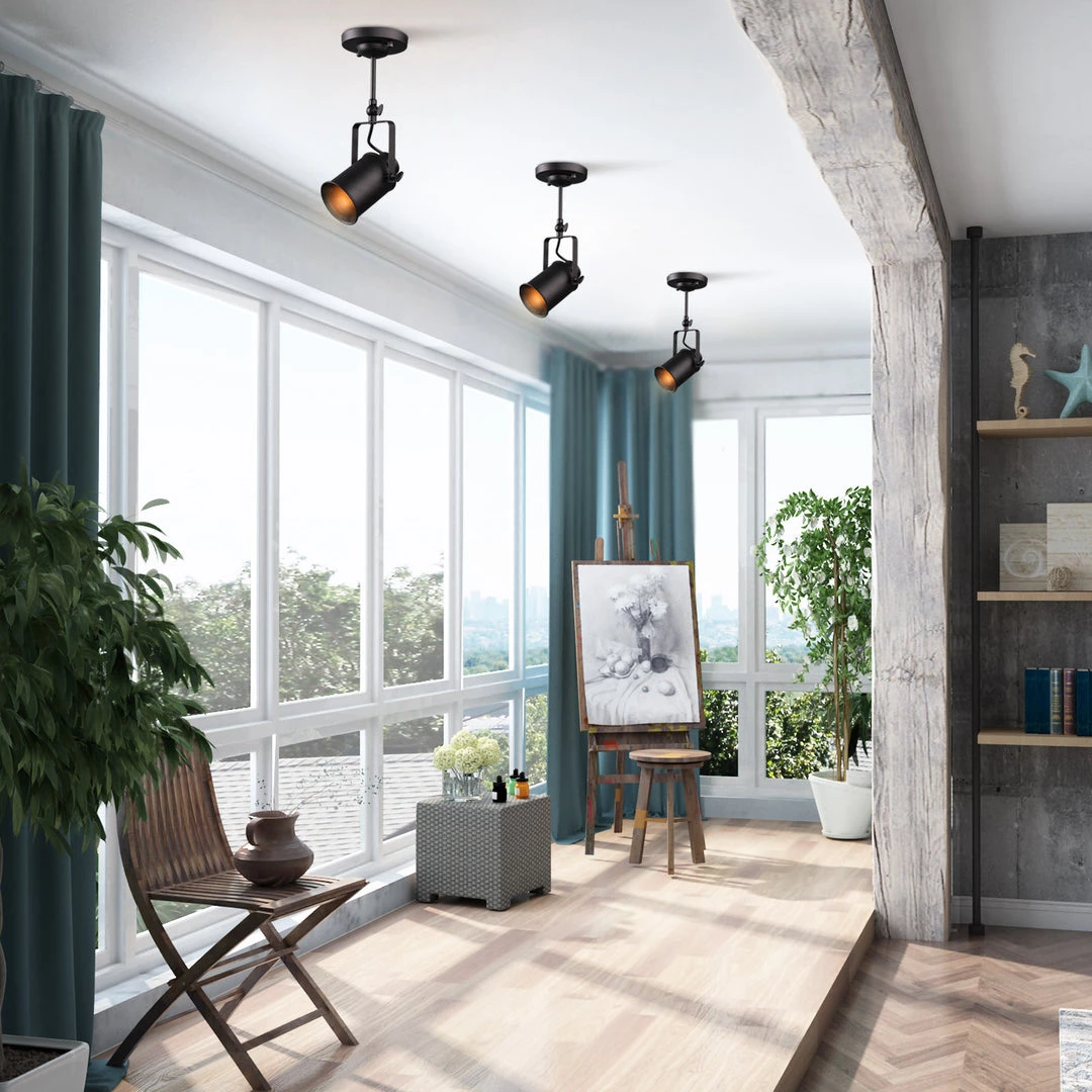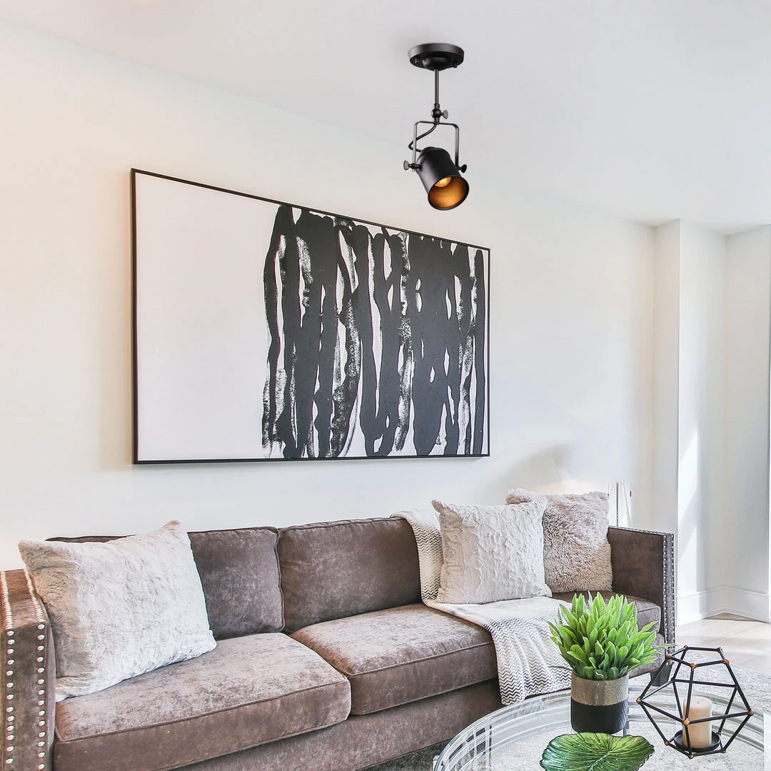 Finished in rich black, this metal lighting fixture casts a focused beam with an Edison bulb(Not Included) in a pivoting shade.The industrial style spotlight can be converted into a semi-flush mount ceiling light or a wall sconce with all the hardware included to make these easy adjustments.