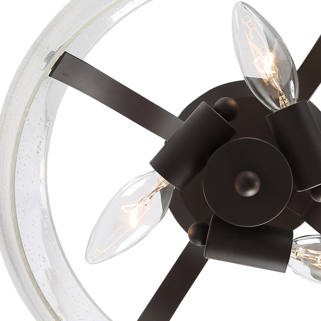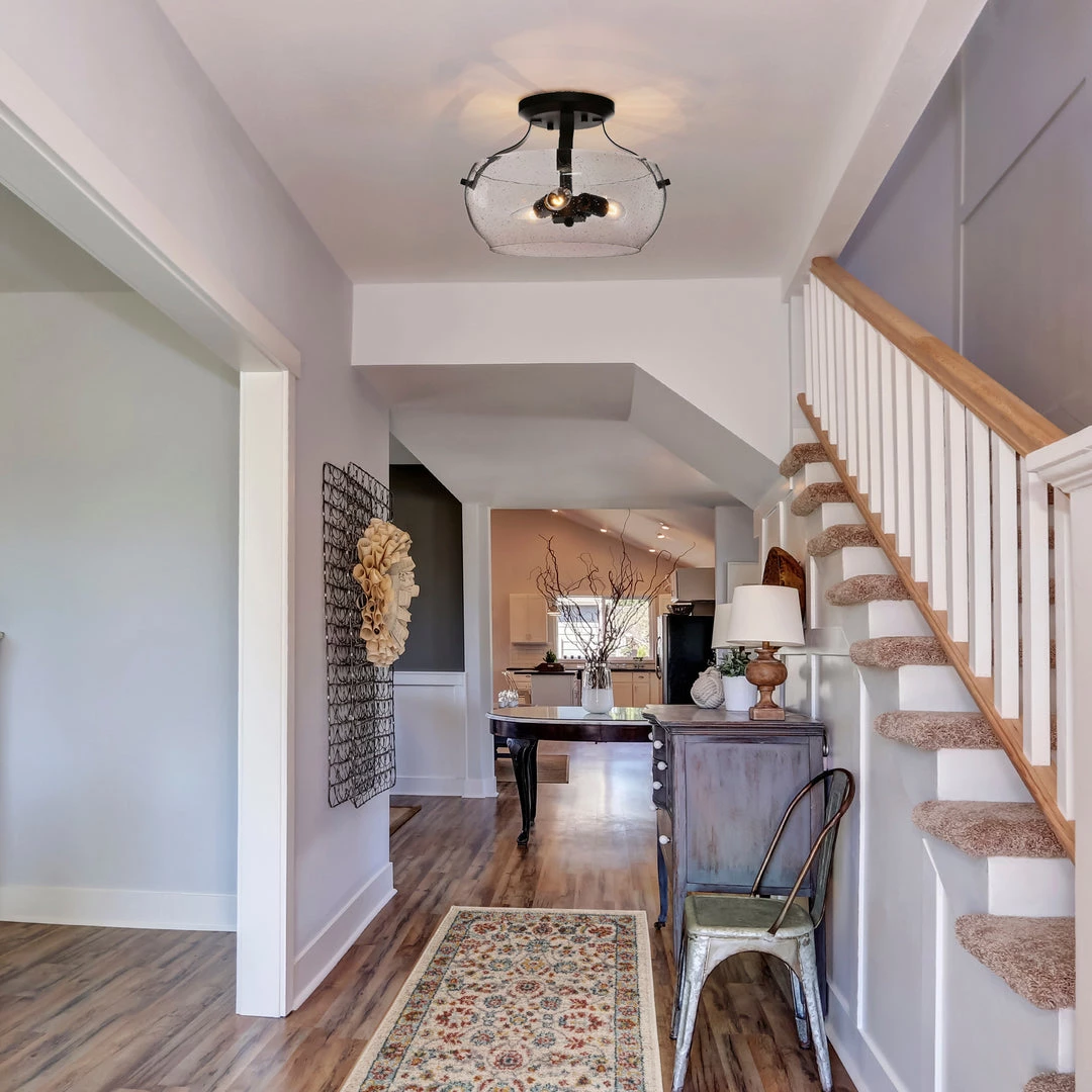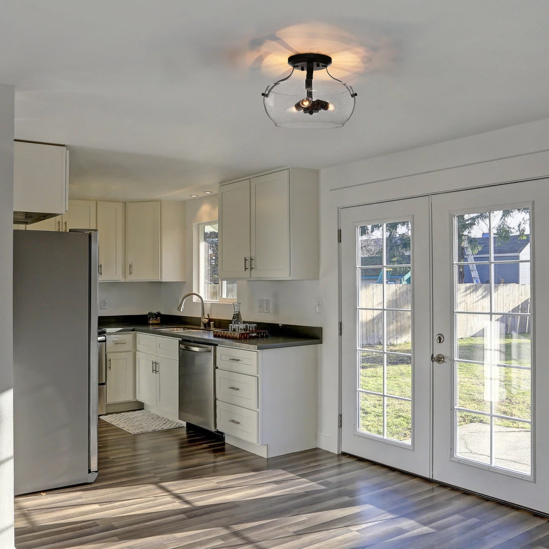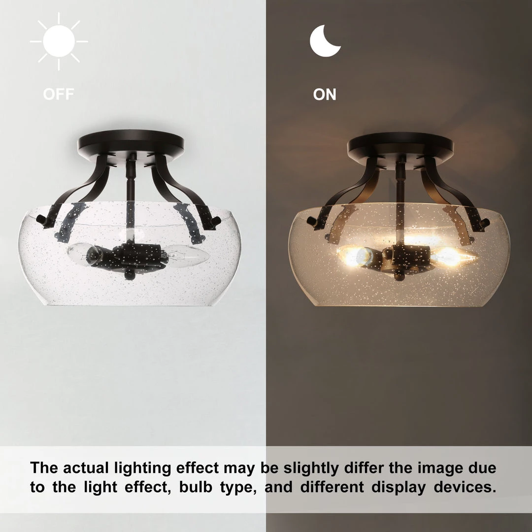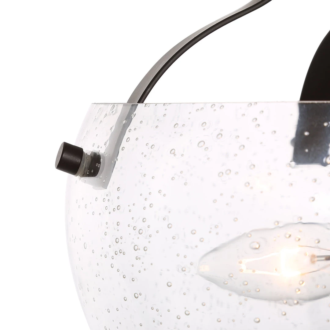 Crafted from black metal base and seeded glass shade, this piece boasts an industrial design, working well in a variety of aesthetics. Ideal for your kitchen, bedroom, foyer…etc. With the open frame design, your room will be filled with enough warm glow. It will make a subtle but chic impact on your industrial, modern farmhouse, or contemporary interior.
