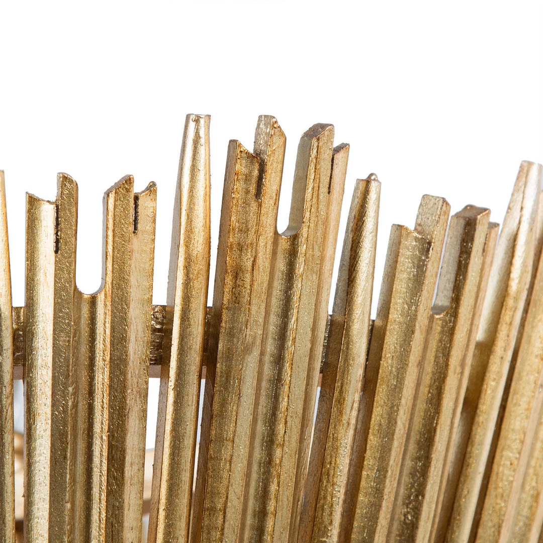 This eye-catching chandelier is destined to be your statement piece. With straw-shaped stripes finished in aged gold, this fixture exudes boldness and personality. The textured gold veneer is added with depth and a strong note of vintage vibes which fill your spaces with chicness beyond measure.