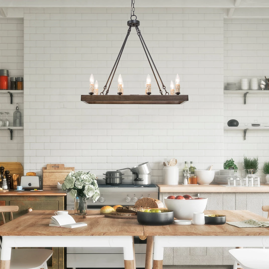 With lots of classic mid-century style, this vintage-inspired chandelier has a modern take on the classic design. The distressed candelabras deliver a strong vintage aesthetic without the long wait. Destined to be the centerpiece in any room, this chandelier adds immediate style and vintage vibes to your kitchen, living room, or foyer.