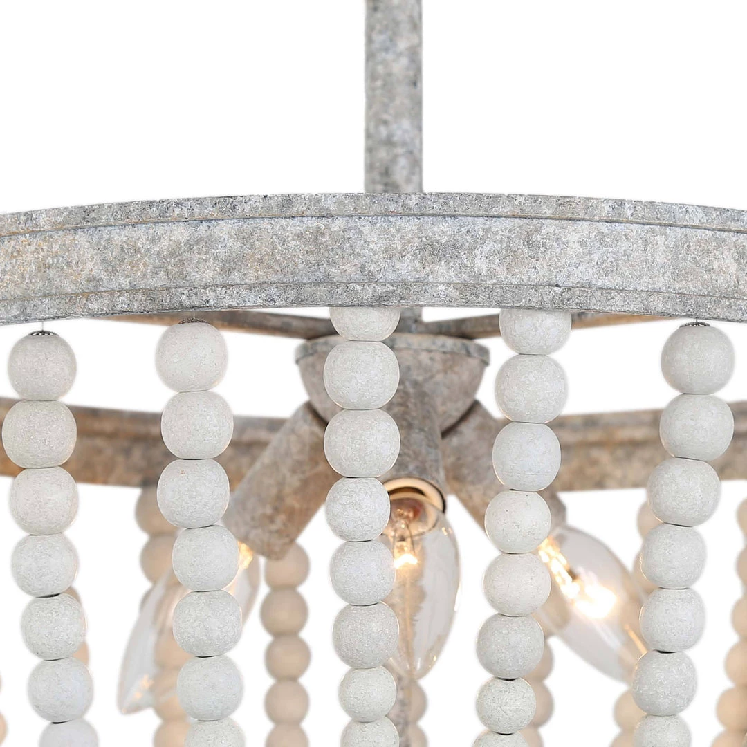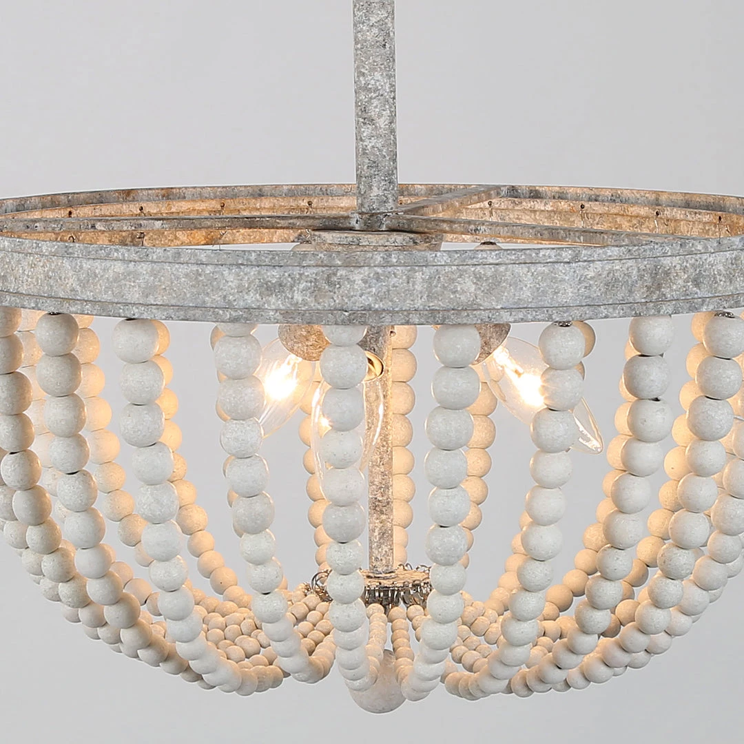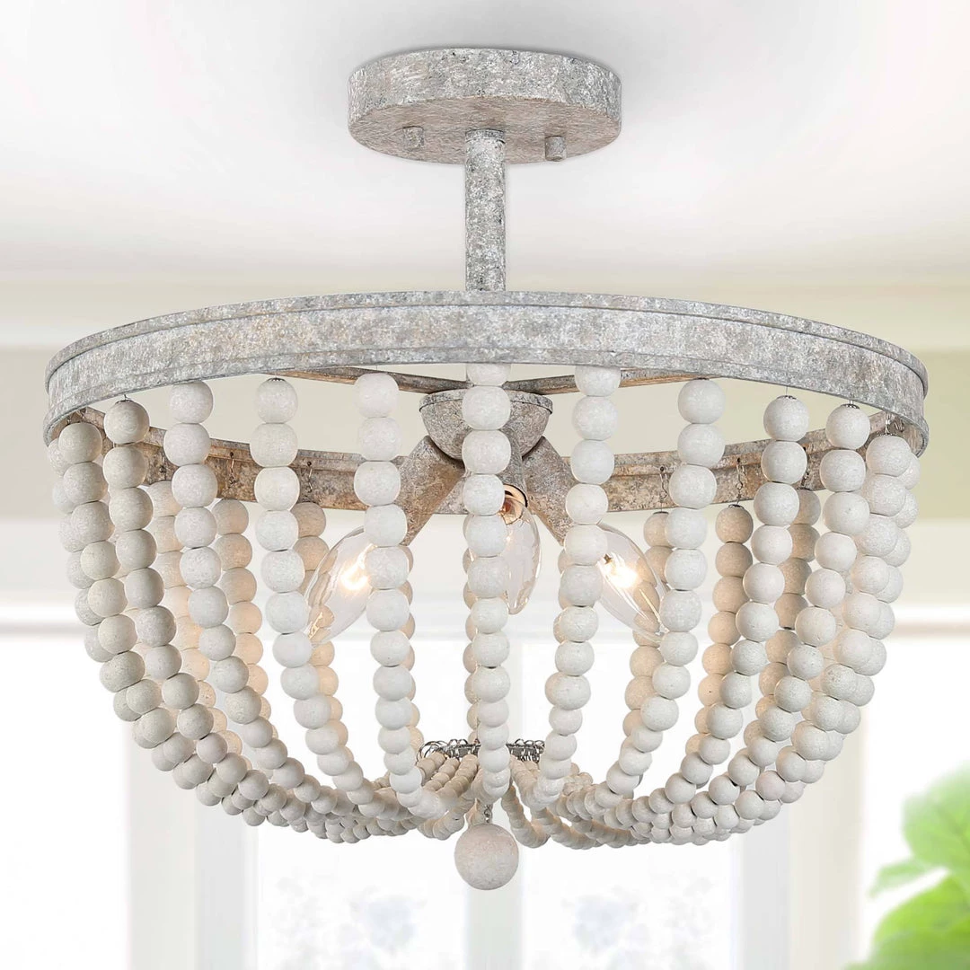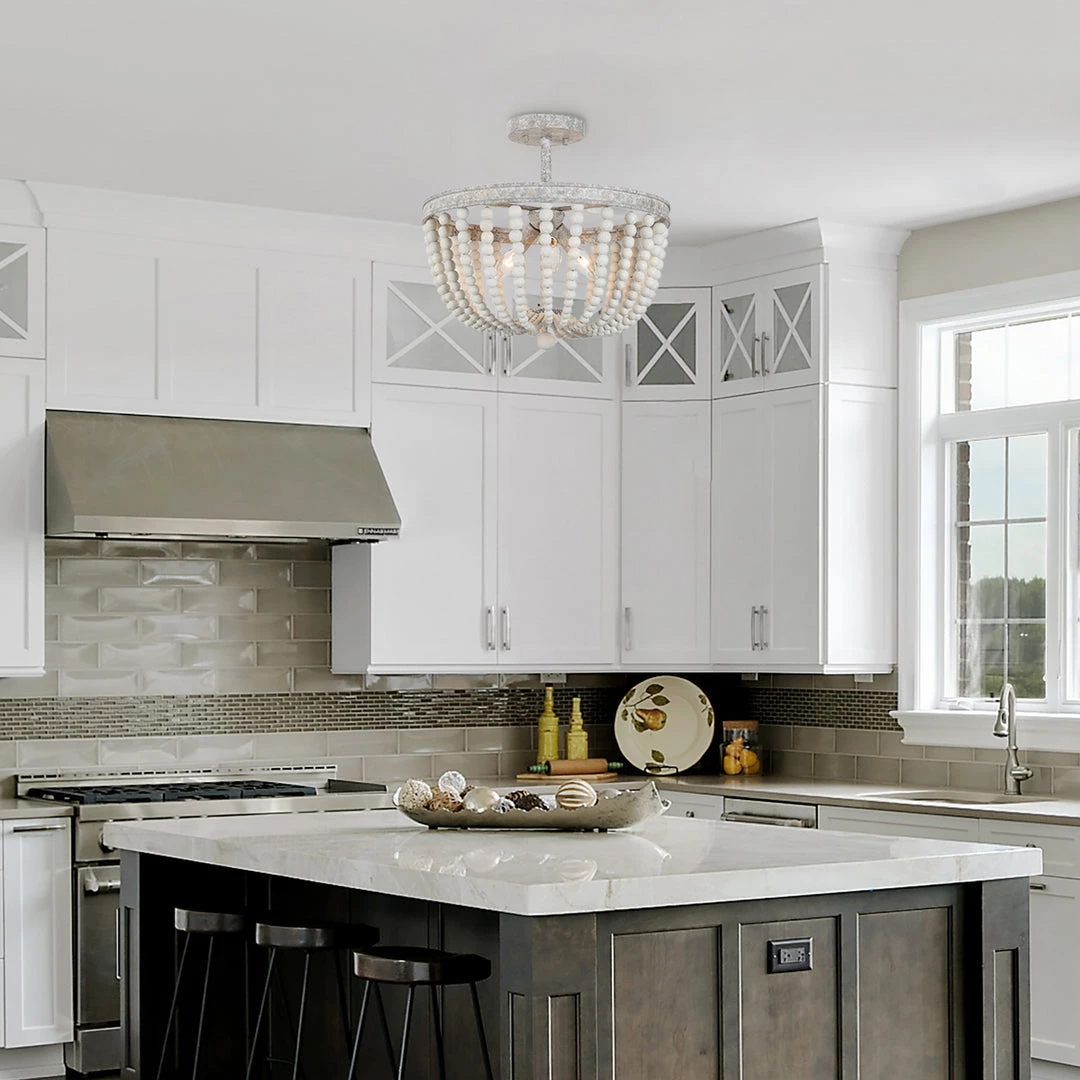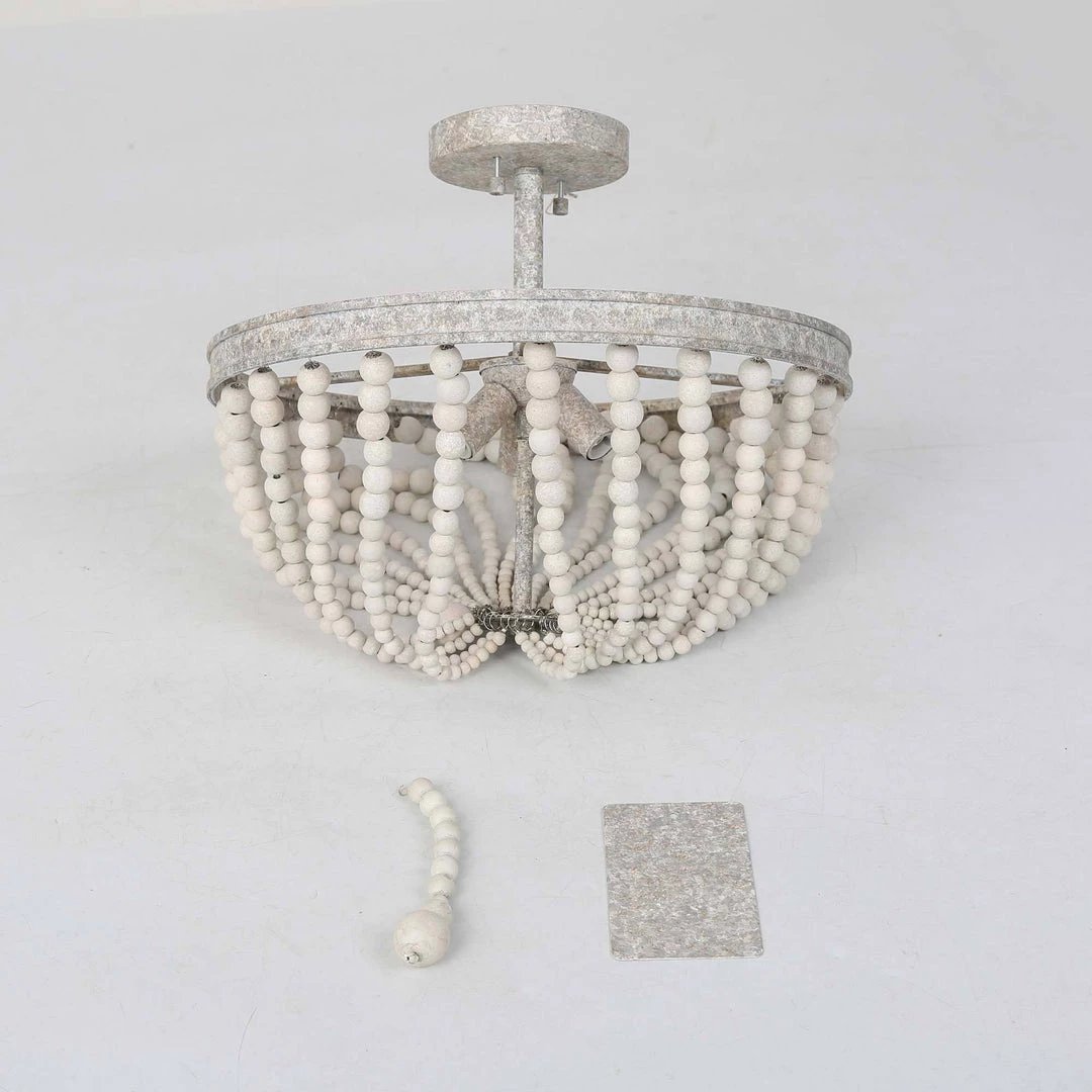 Designed and crafted by our experienced in-house artisans, this white wood beaded semi-flush mount translates each element into vintage and French flair. It will fit in perfectly with your farmhouse, rustic or French country style. Perfect for your kitchen, dining room, foyer…etc.