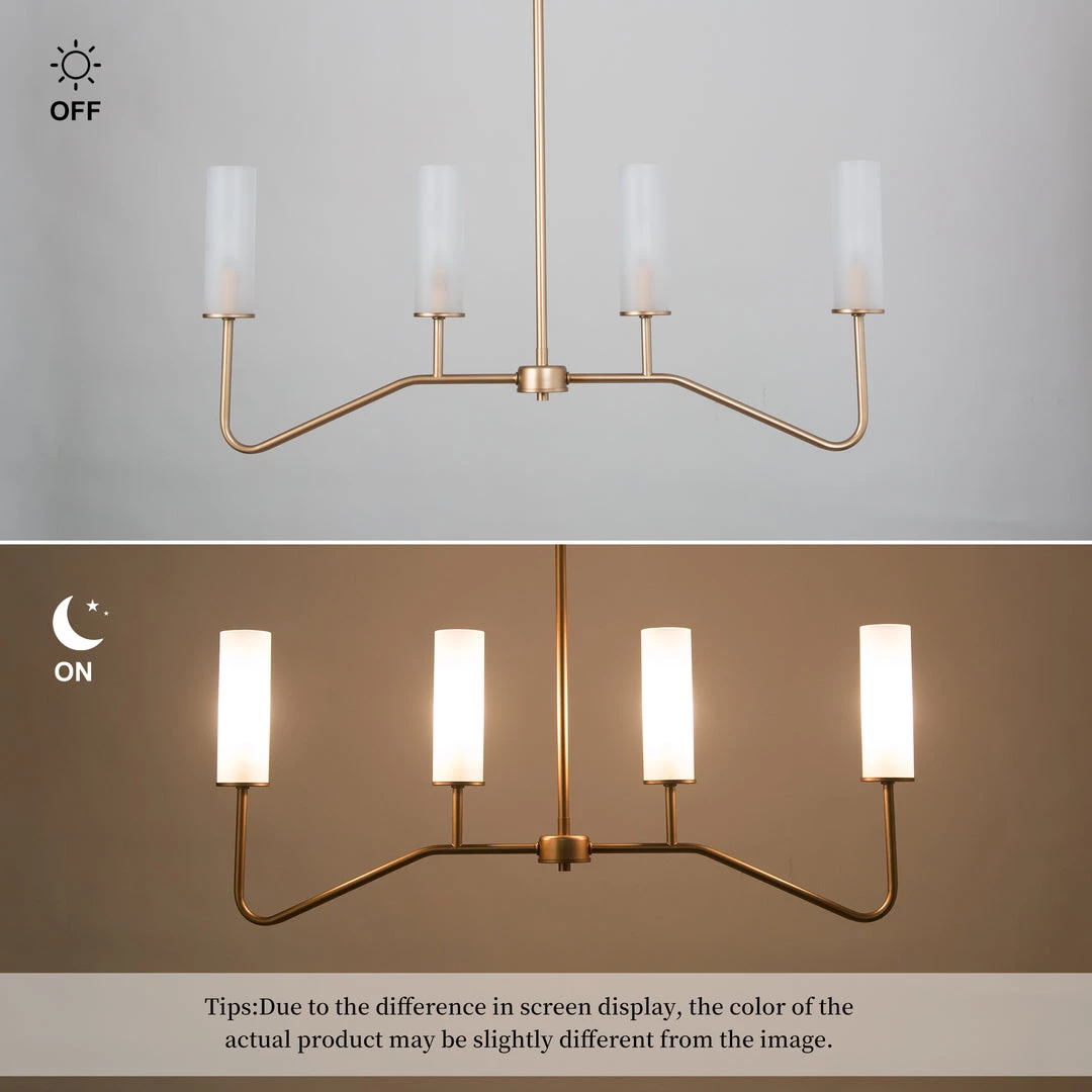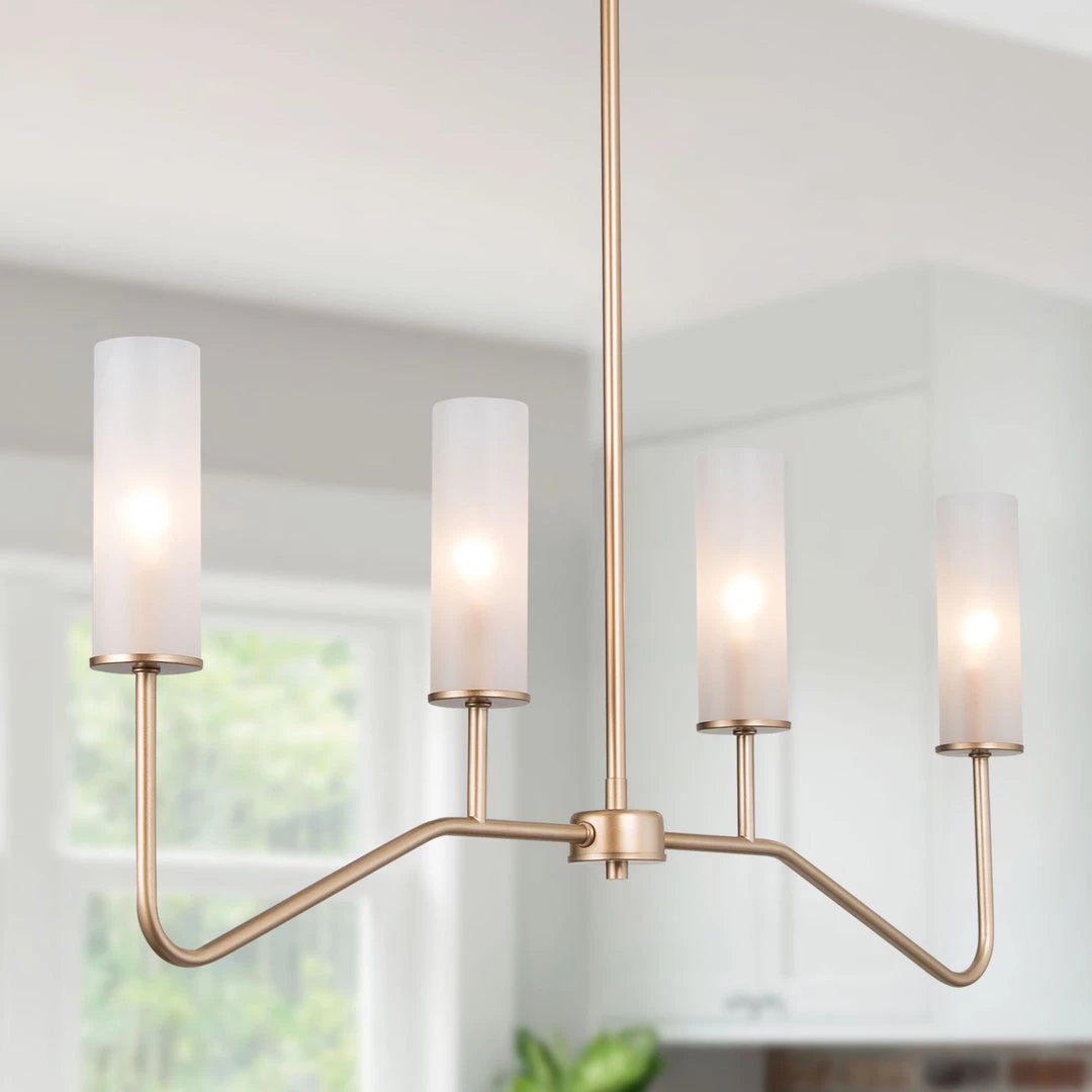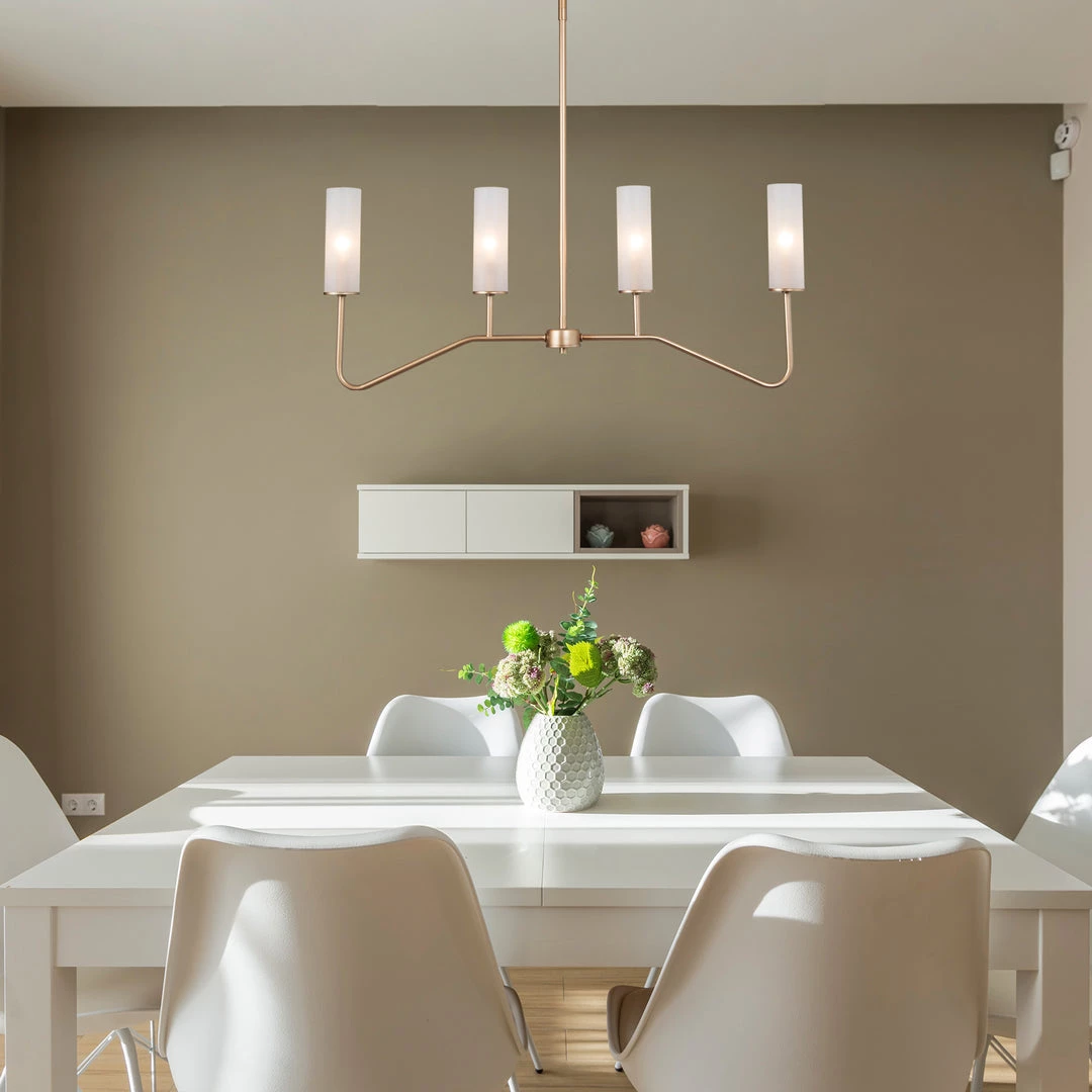 This stylish modern chandelier will be a string feature in your living room or dining room. With 4 cream cylinder candelabras and oversized arms, this fixture offers a modern aesthetic that will put a sleek finish on your stylish abode.