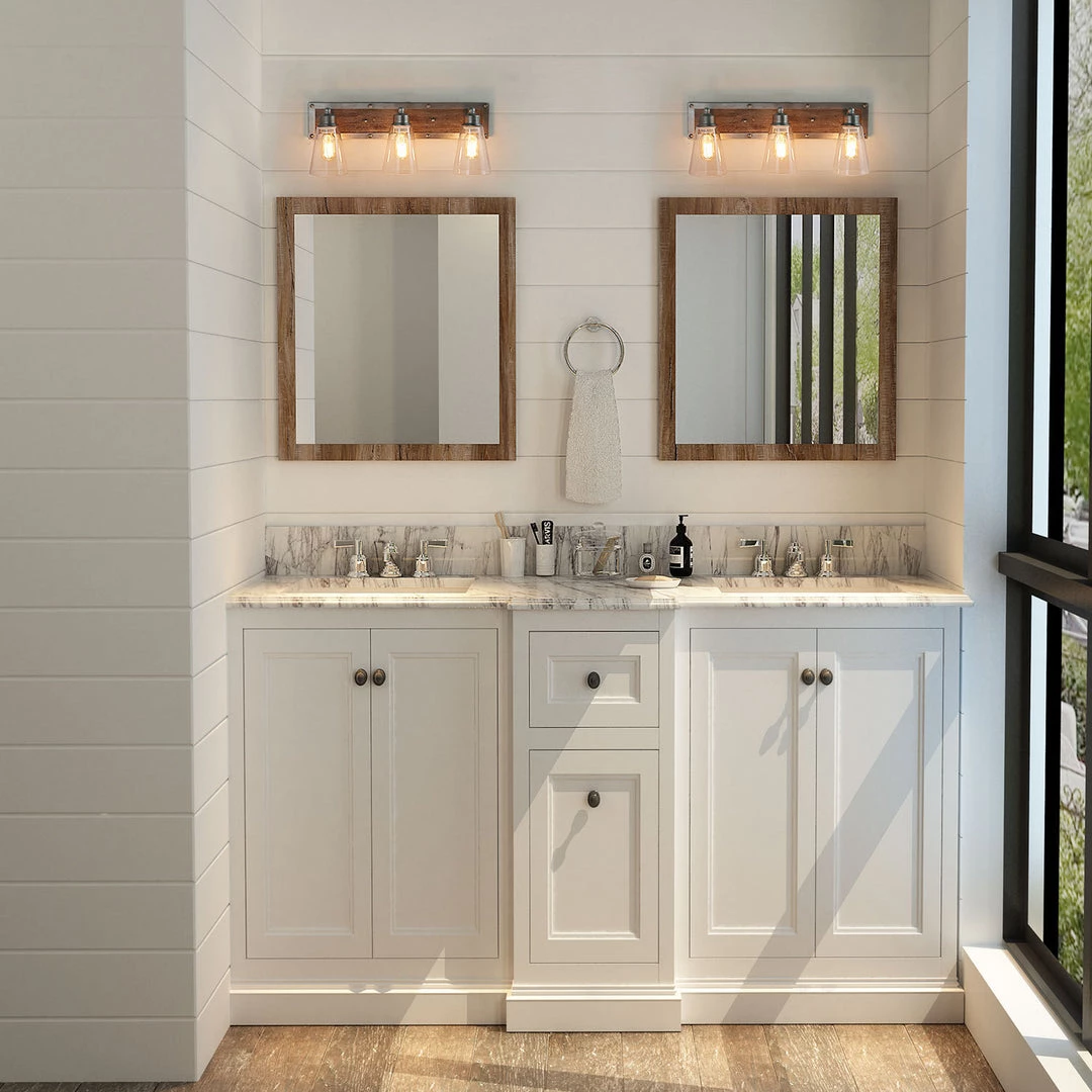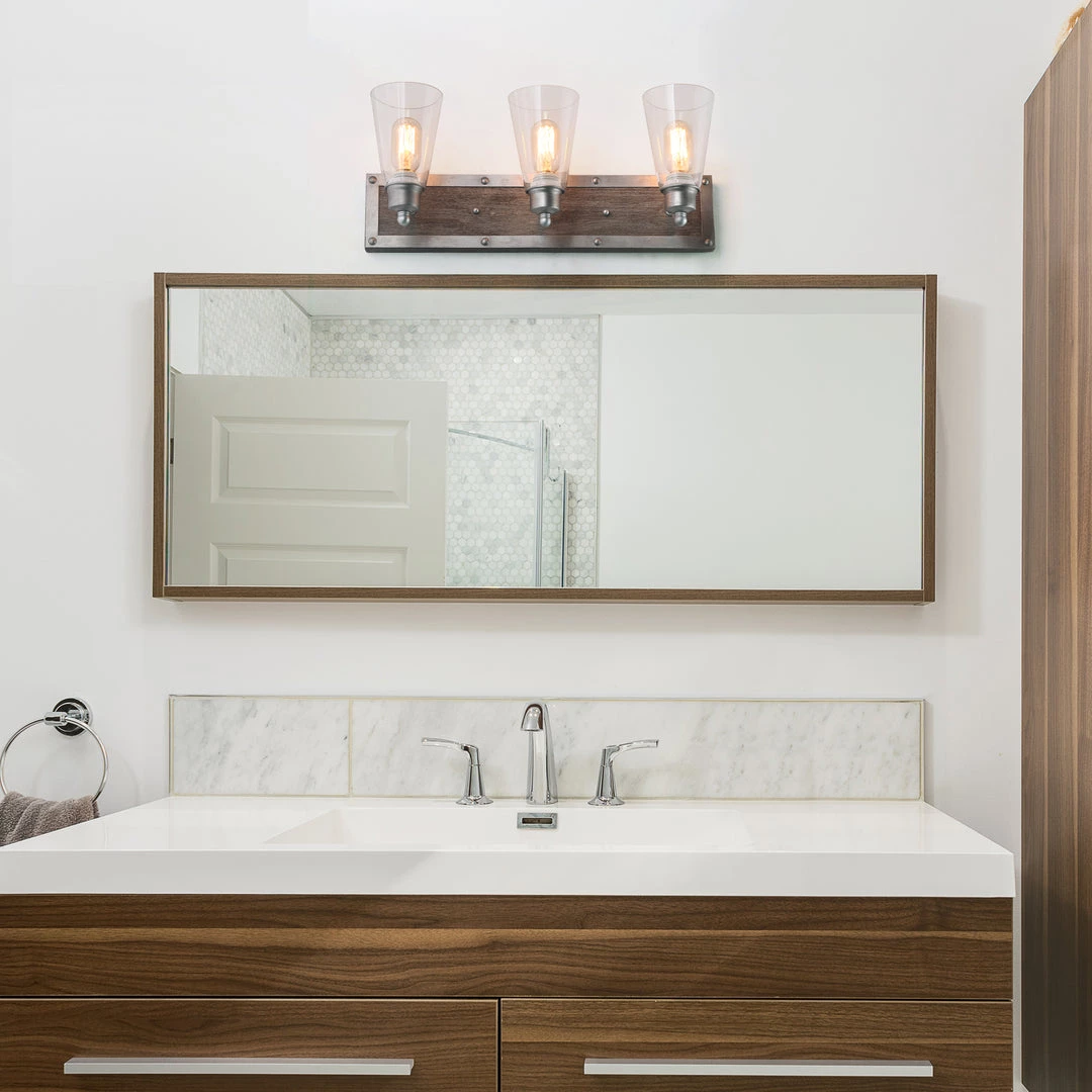 Glass lampshade adopts traditional hand glassblowing industrial technique to perfect glass’s artistic style with 3 inner bulbs(Not included). A natural wood frame gives your home a simplistic decoration and farmhouse presence. A featured cone glass shade makes illumination brighter.