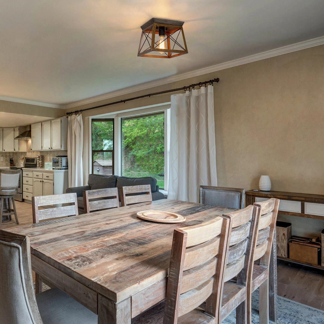 Ideal for industrial or farmhouse interiors, this Aged-wood Cottage Ceiling Light will have your space shining bright with fashionable flair. The combination of wood grain and sleek metal lines makes this piece exude simplistic charm. The wood grain of different shades adds more distinct characteristics to this truly elegant piece.