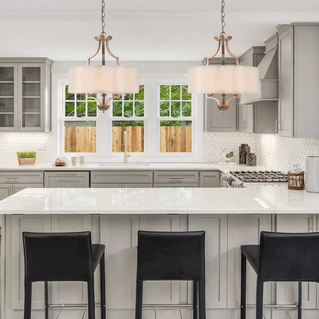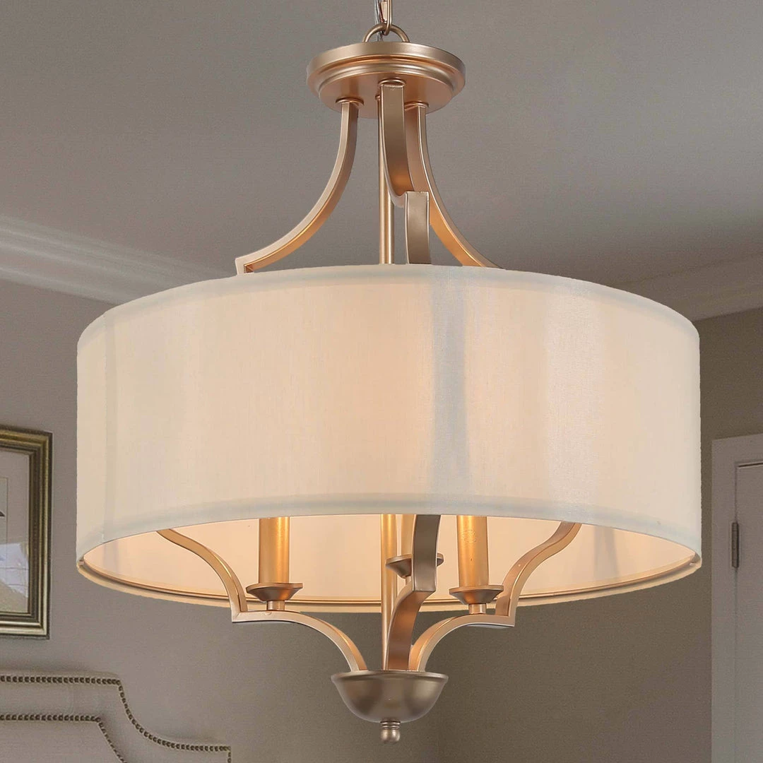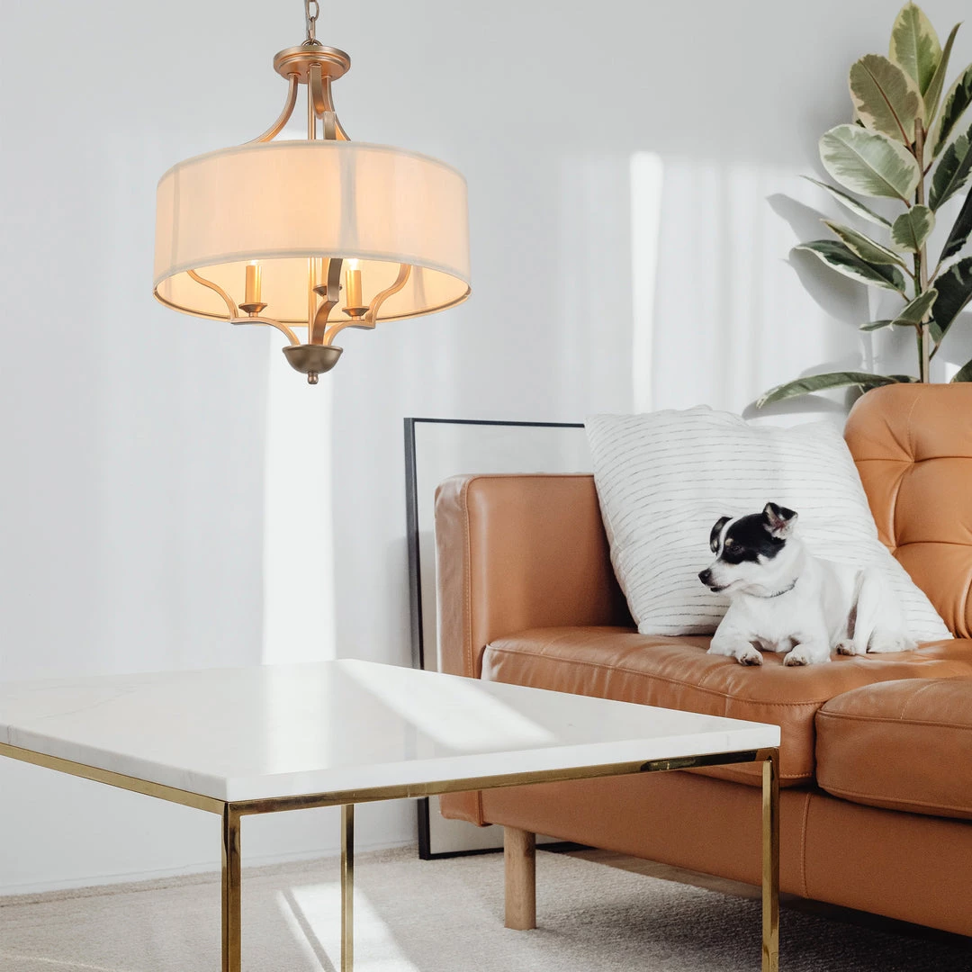 Without complicated color and intricate lines, this retro understated flush mount aims at emphasizing the pure contentment and simple beauty of home decor. The elegant drum shape with gold flower line successfully creates modern chicness and uniqueness which works perfectly in your living room, kitchen, or foyer.