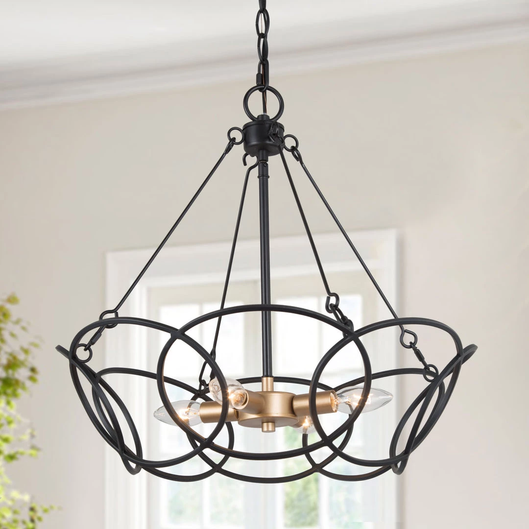This Collection has a unique geometric exterior protecting a candelabra cluster. This brave styling will be a welcoming touch in a soft contemporary foyer or kitchen. Bold and strong paints the personality of these chandeliers to make a statement in your home. The rod comes adjustable from 1-59 inches thus it is suitable for most ceilings, install it to have more modern charm!