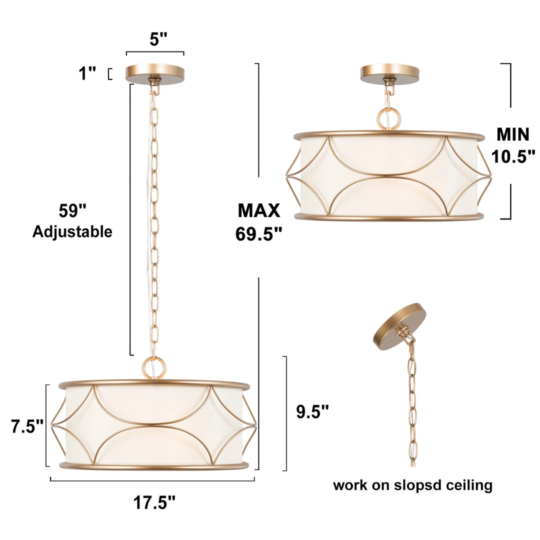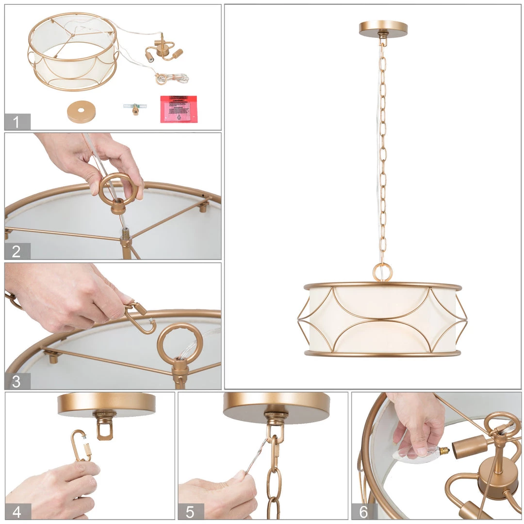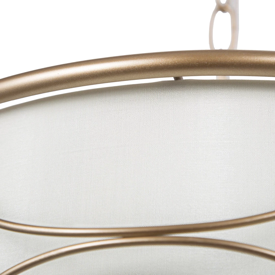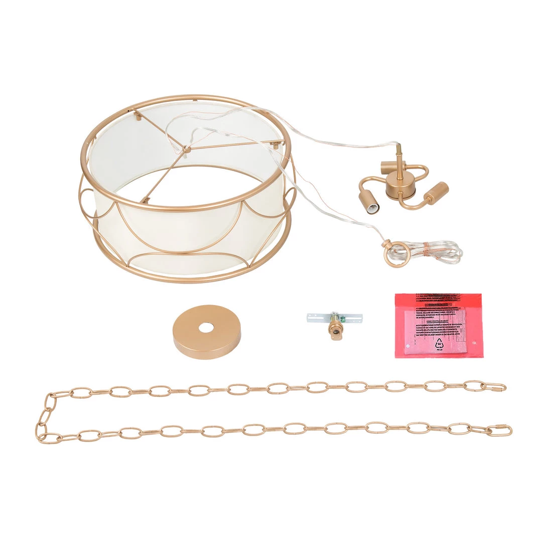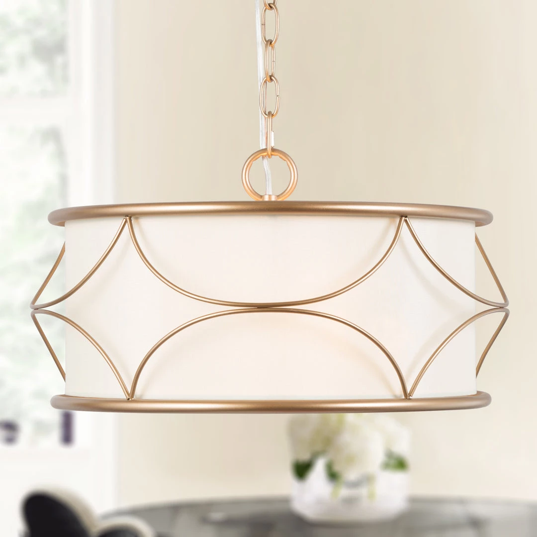 The retro-inspired chandelier features a cream fabric shade surrounded by soft vintage gold curves. The modern, simplistic, and fabric shade has strong demure vibes that build a chic fairy space. With the creative combination of gold and cream, this gorgeous piece suits your bedroom, foyer, or dining room perfectly.