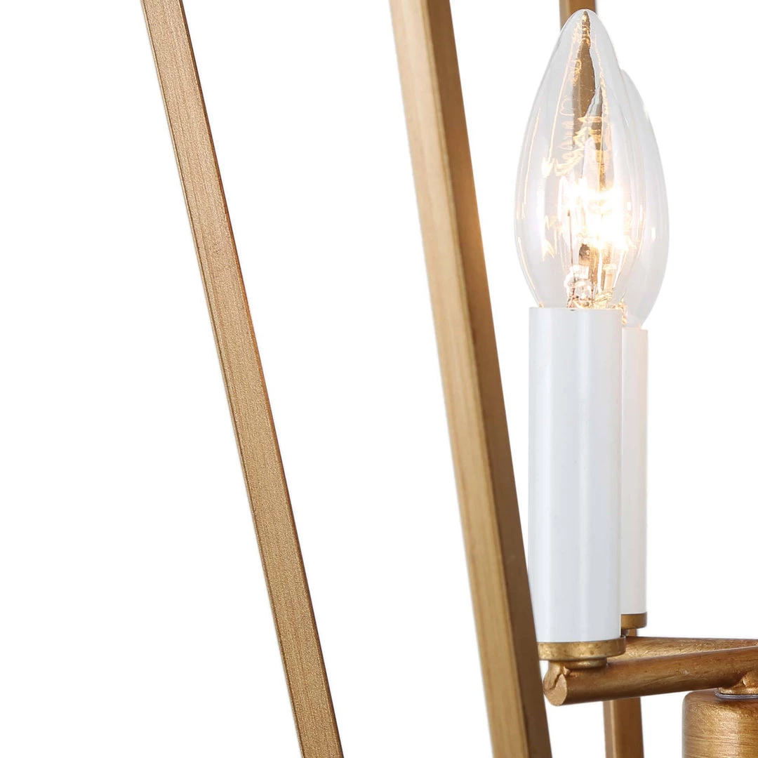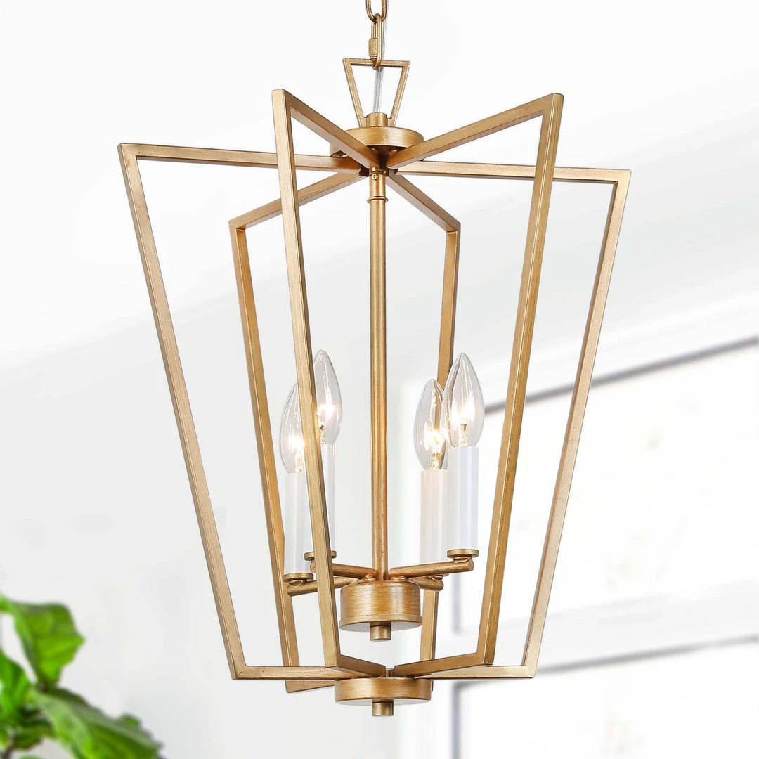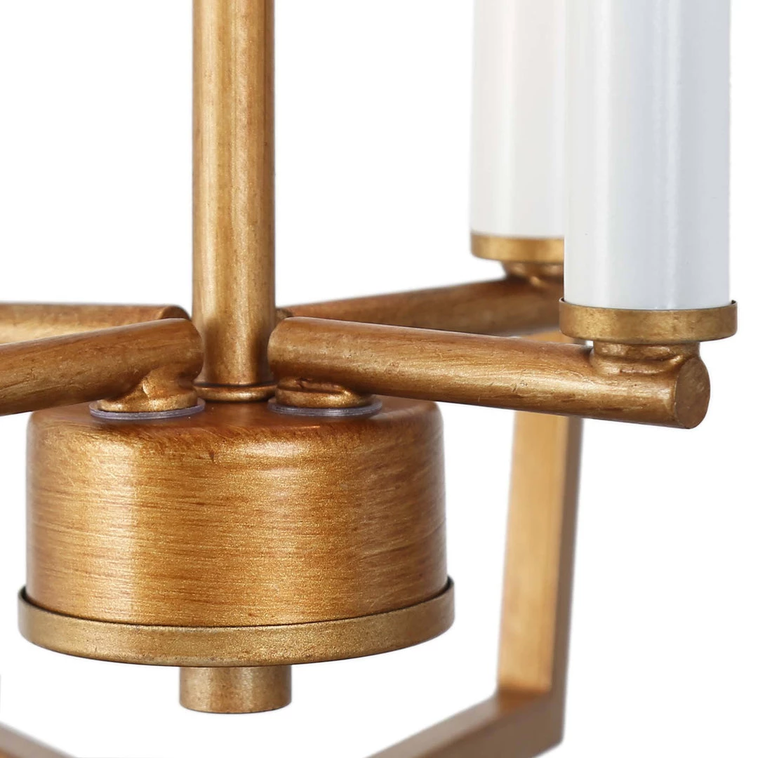 This clearly modern chandelier channels a sleek and edgy aesthetic with its sharp angles and straight-forward physique. Polished Gold finish and the geometric frame form this intricate and elegant piece that adds immediate cleanness and modern vibes to your spaces.