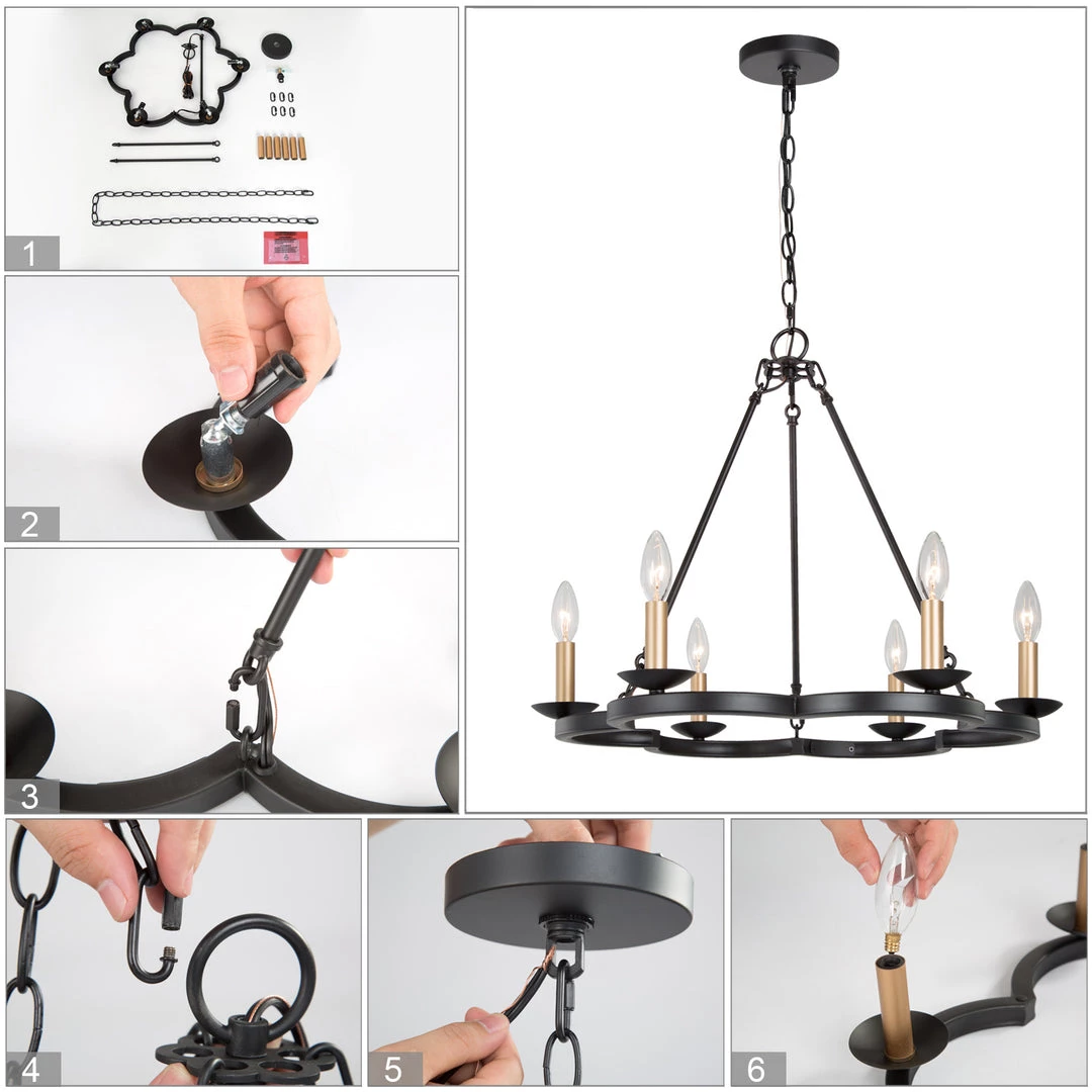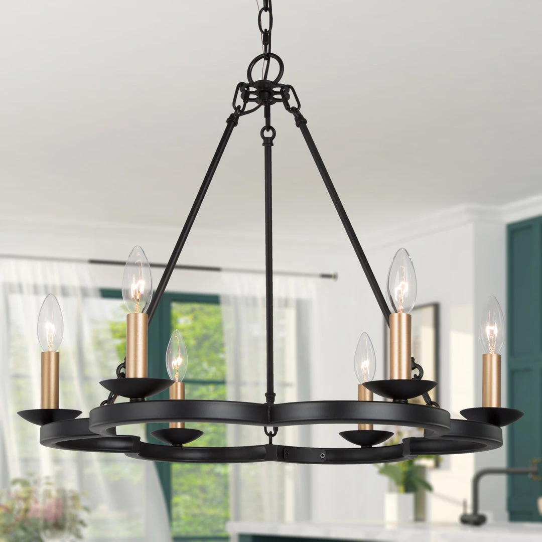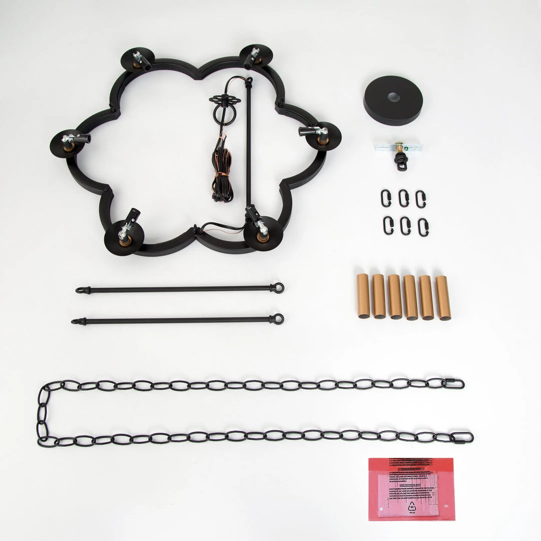 With six candelabras sitting on the plum blossom-shaped plate, this modern chandelier has an unadorned silhouette, which is the paragon of Less is more.The simplistic lines lend fluidity to this lighting fixture originated from the ancient traditional chandeliers. The combination of gold and black produces this understated but truly gorgeous piece that will stun all your guests.