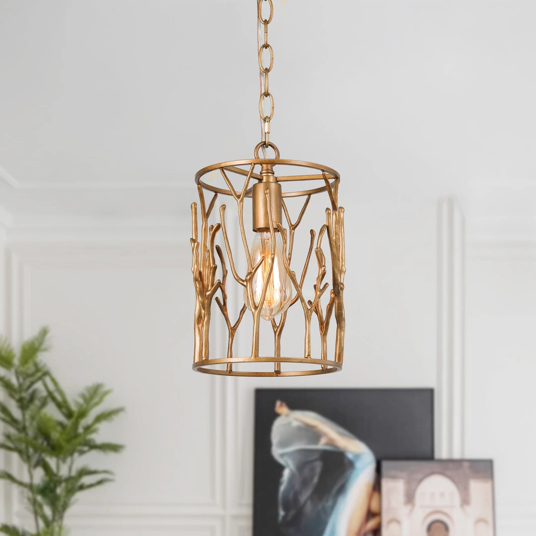 The pure golden finish pendant brings not only a noble and luxurious appearance, but also a gesture of life, and the finish with the clean geometry of this design makes for a bold pendant, perfect for in a kitchen or over a small table in need of a little sparkle.