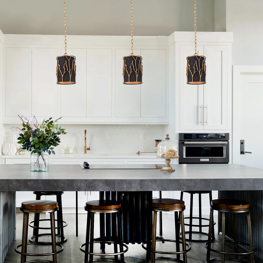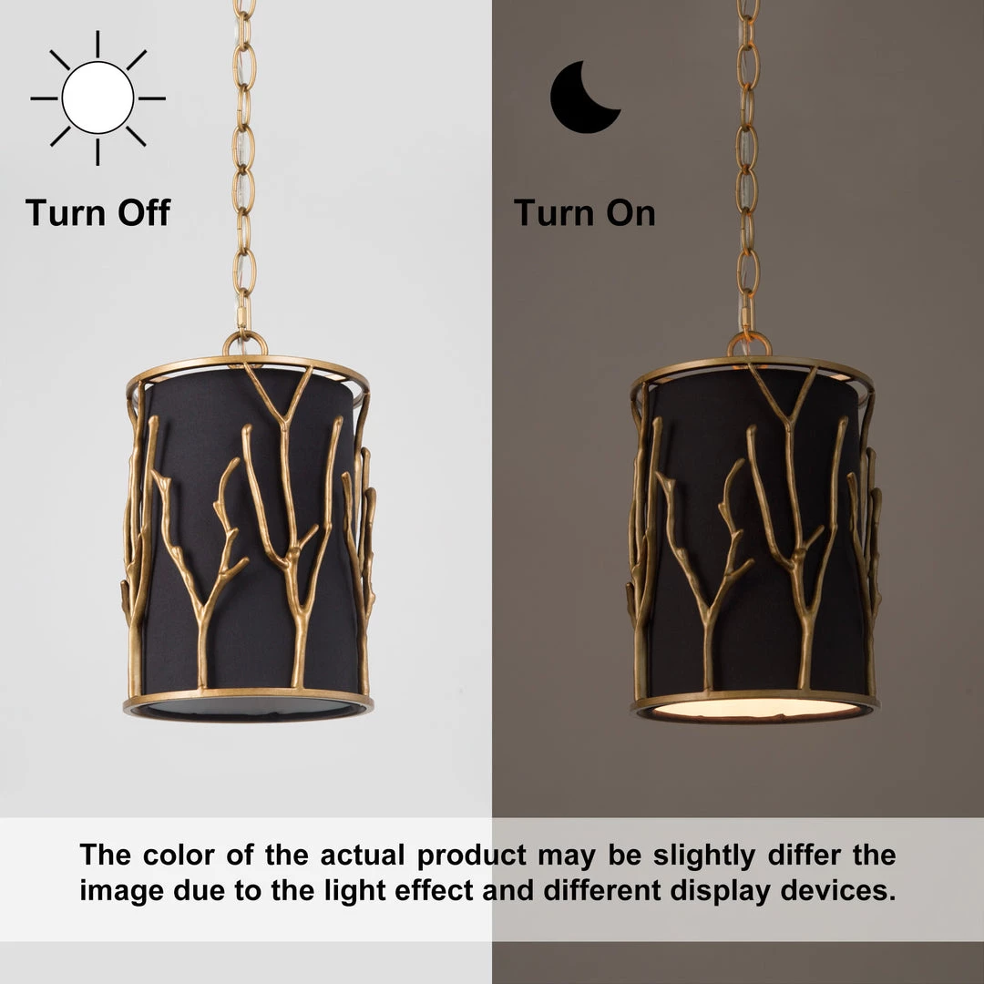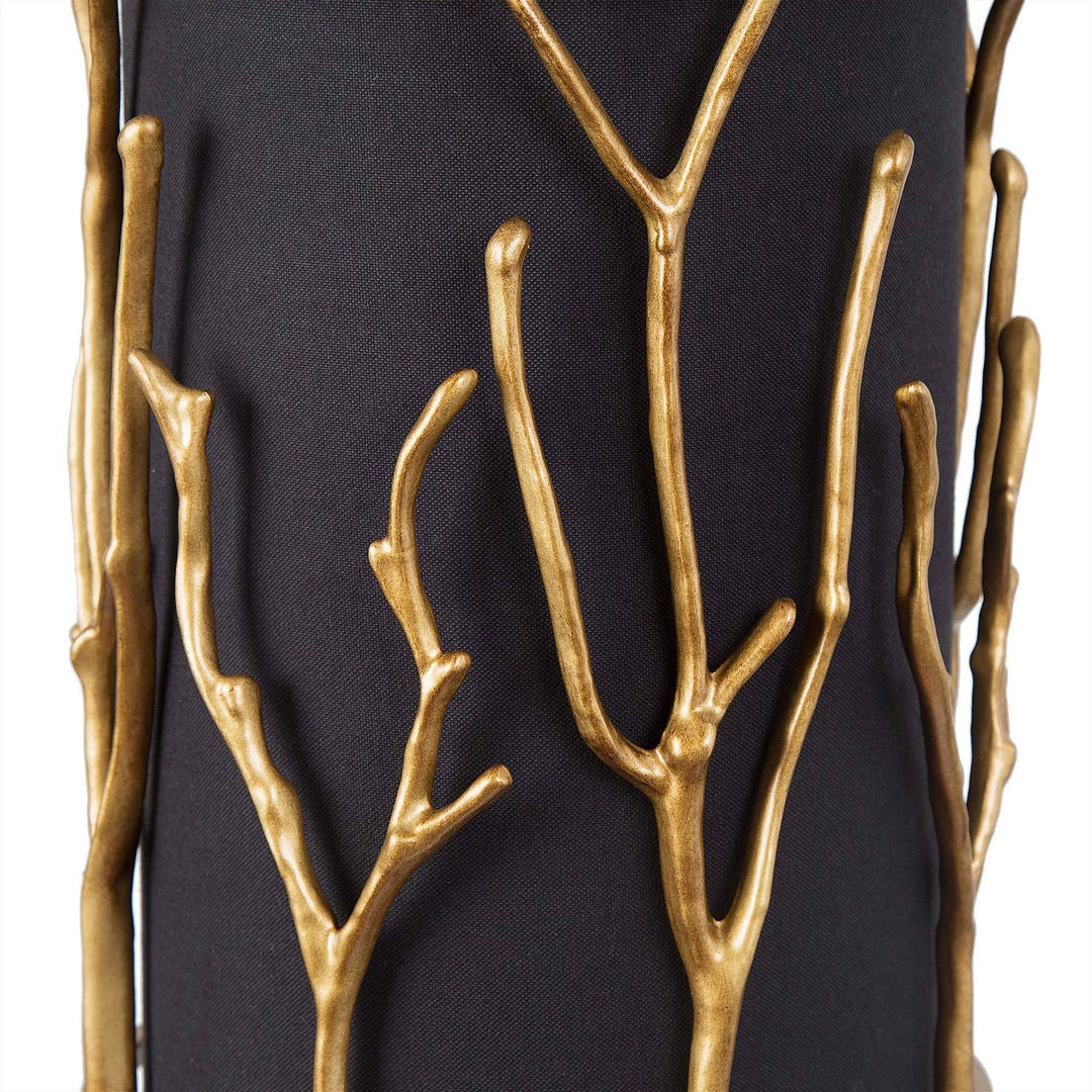 The black lampshade and the golden tree-like geometric design are intertwined to create a harmonious and high-end atmosphere.