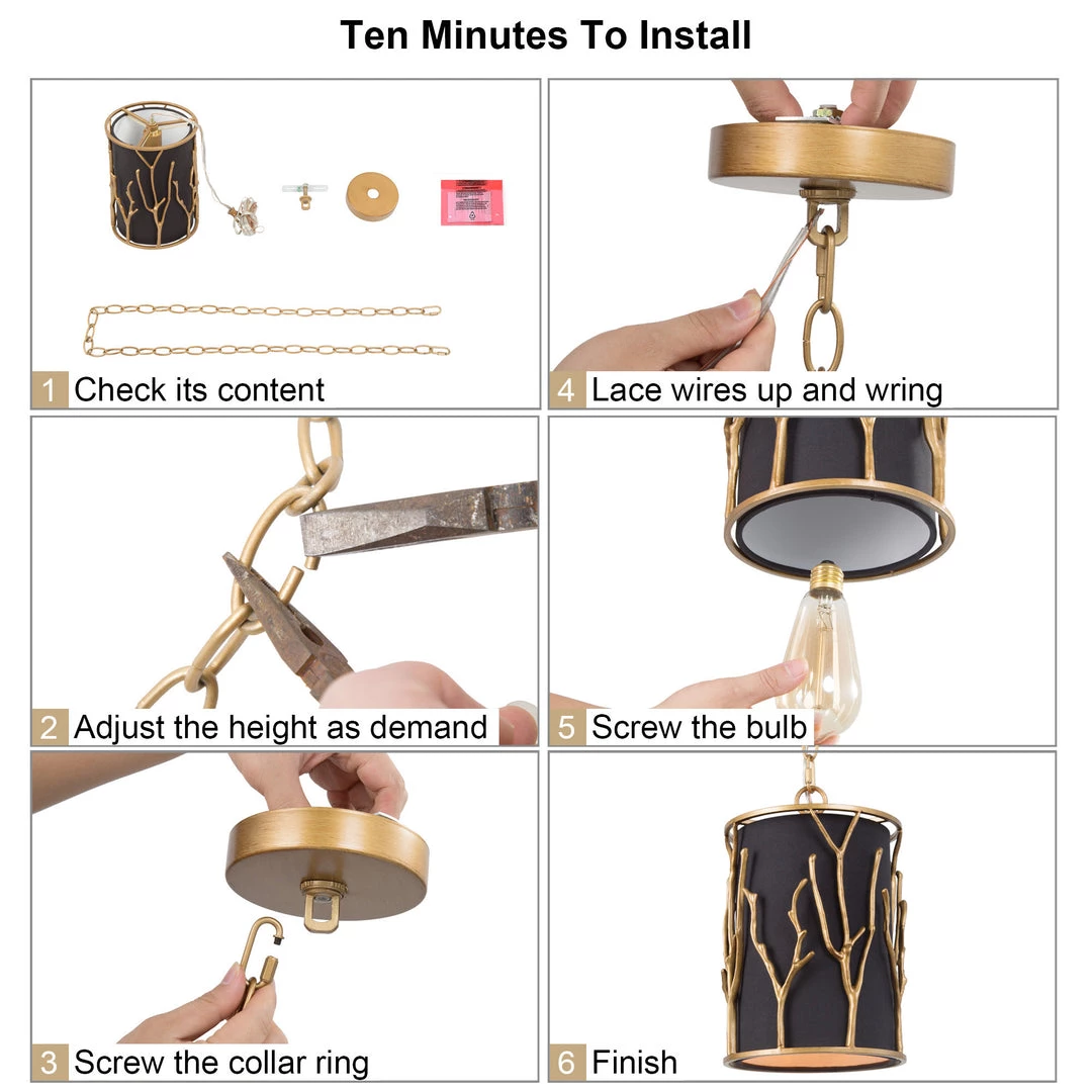 The chain can be adjustable from 1 to 59 inches thus you can hang it in most ceiling conditions. Make a statement by grouping several above an island, dining room table, or down a long hallway.
