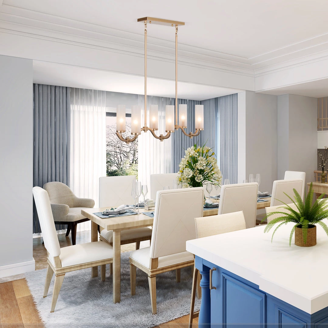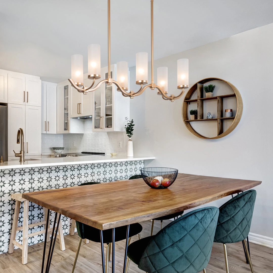 Featuring cylinder candelabras and the vintage gold modern frame, this fixture is the true reflection of modern marvel. Destined to be the centerpiece in any room, this modern chandelier will wow all your guests and fill your room with drama and surprises.
