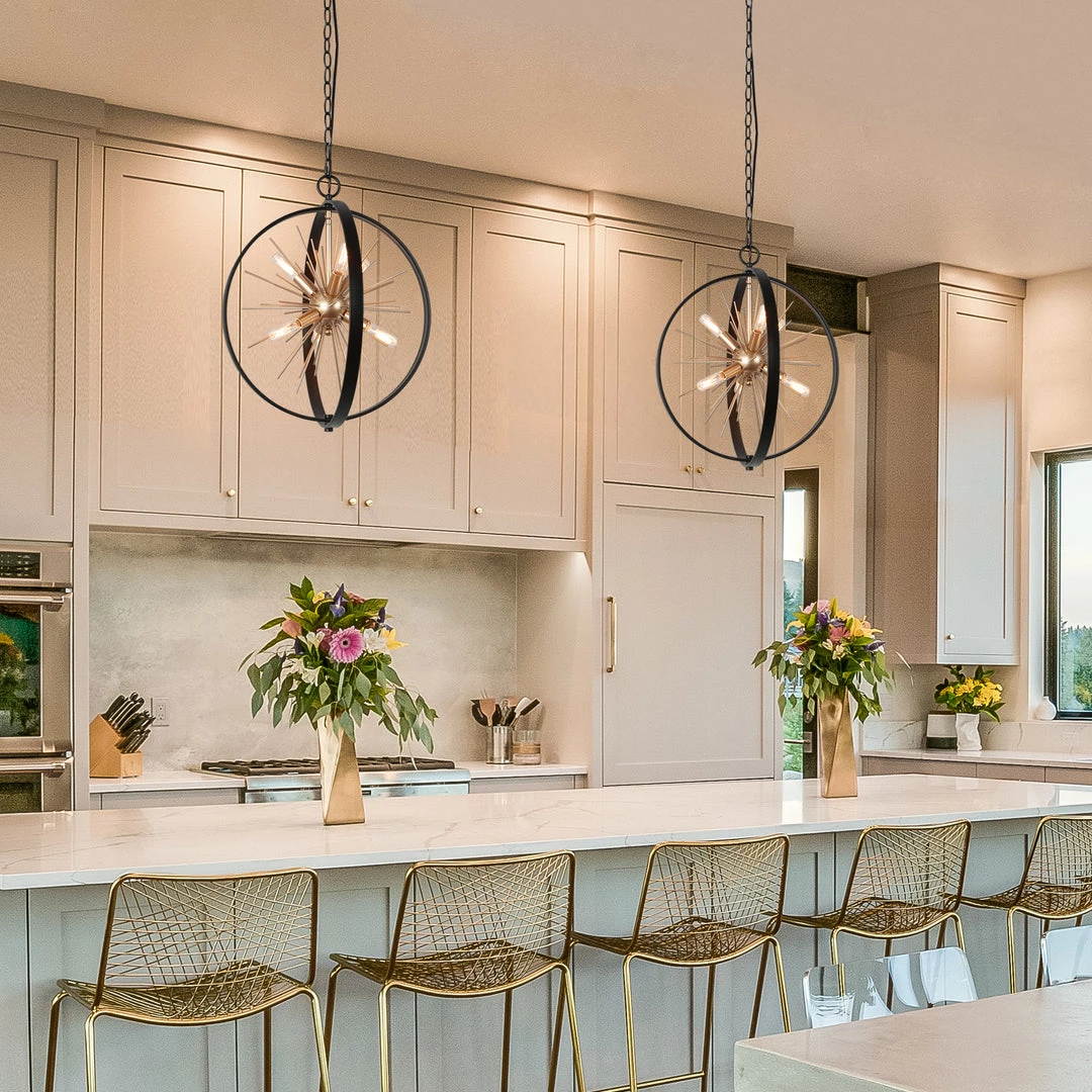 A glamorous essence derives from this Modern Gold Globe Pendant. With aged gold finishing and a daring sense of fashion, this modern and edgy fixture will electrify your personal style.