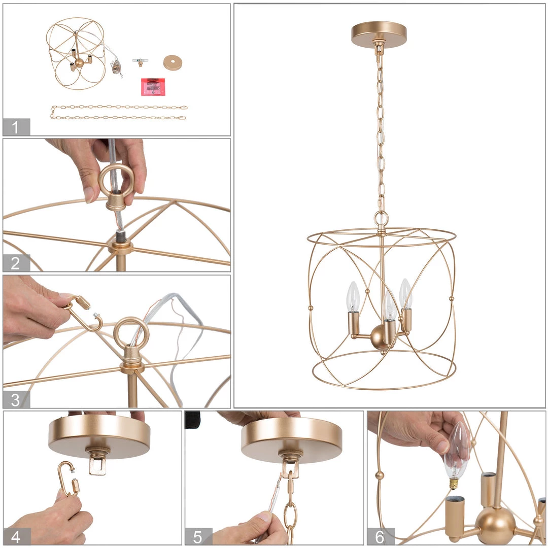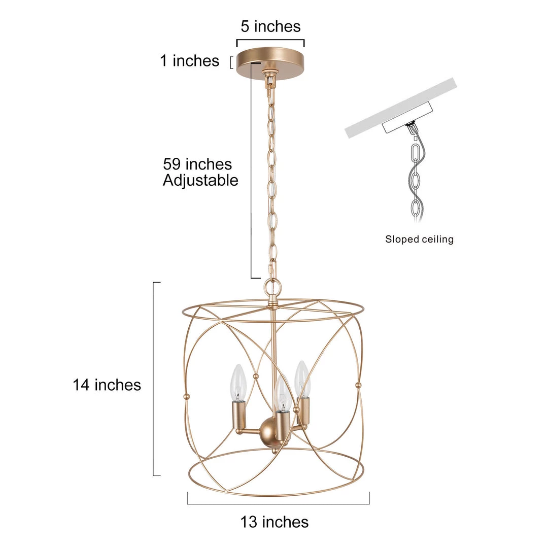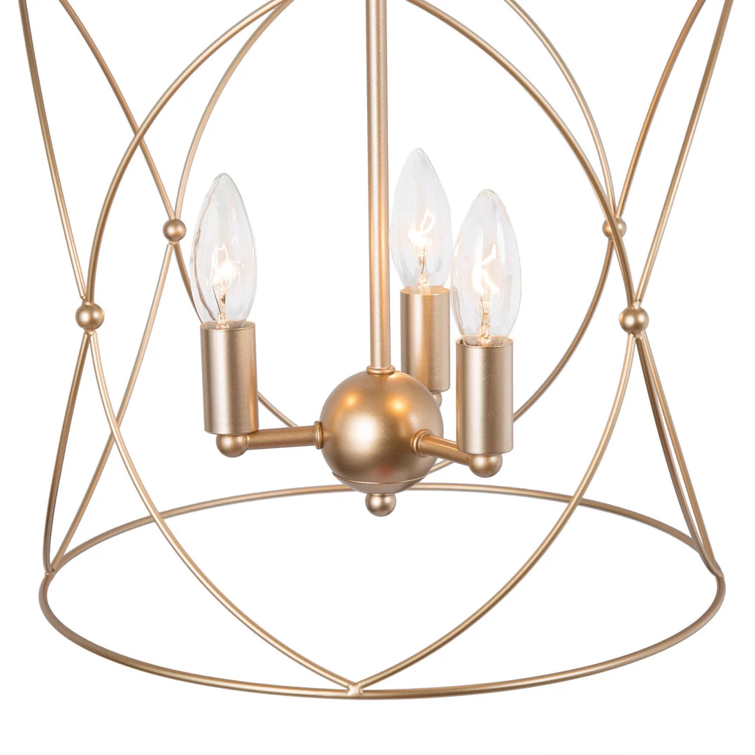 A thin metal frame surrounds the vintage gold stand of this Modern Metallic Pendant. With the apparent retro style and vintage appeal, this pendant will bring an updated classic aesthetic to your living room, kitchen or bedroom. The detailed twisted details add texture and fun to the piece while keeping the clean and straight-forward motif of the overall design.