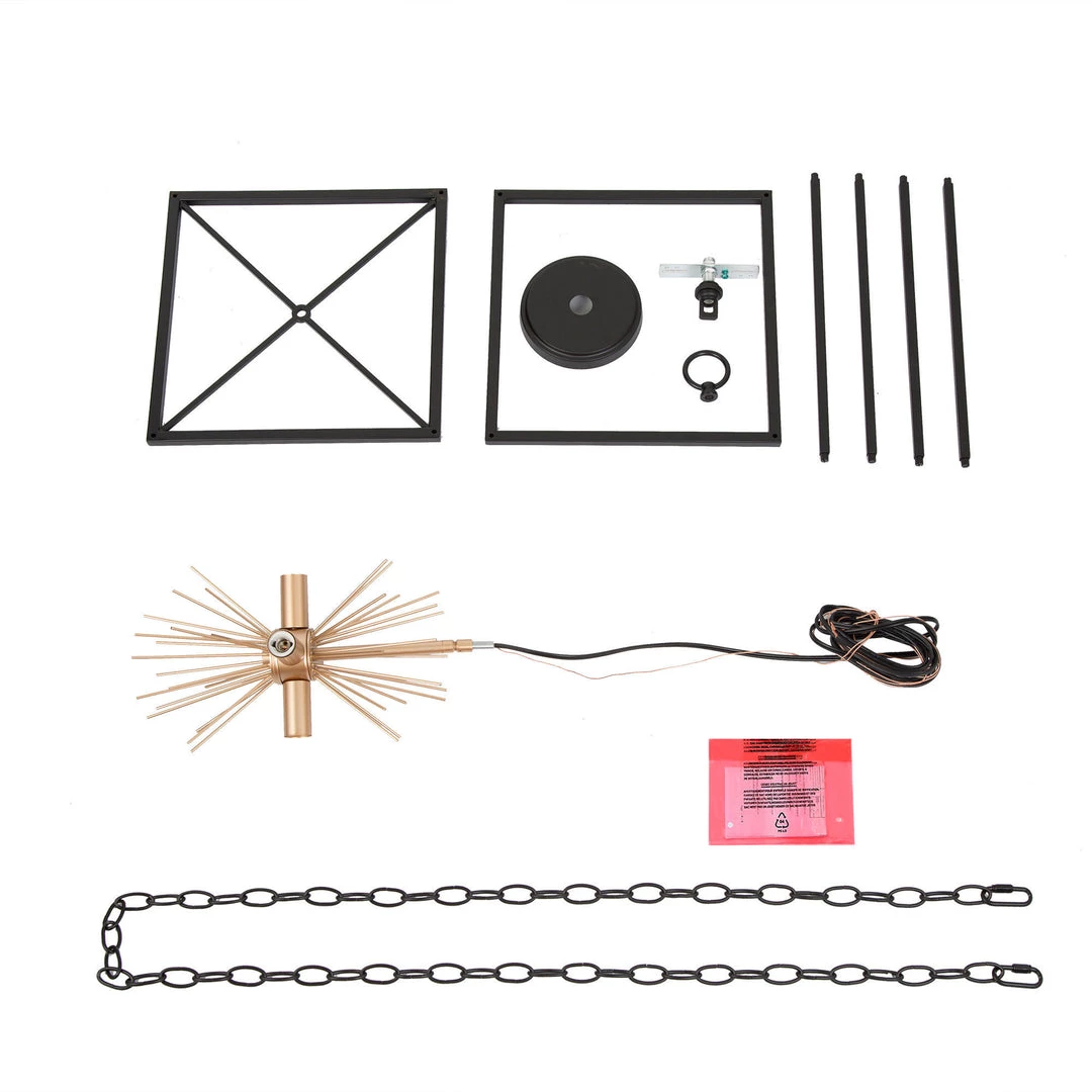 Creating a striking ambiance with this unique and playful shape and refined finishes of this Metal Star Cube Pendant. The radiating aged gold stand creates drama, while the polished black frame instills a tinge of classic vibe to the piece. Perfect for adding some flare to modern, industrial, and eclectic rooms.