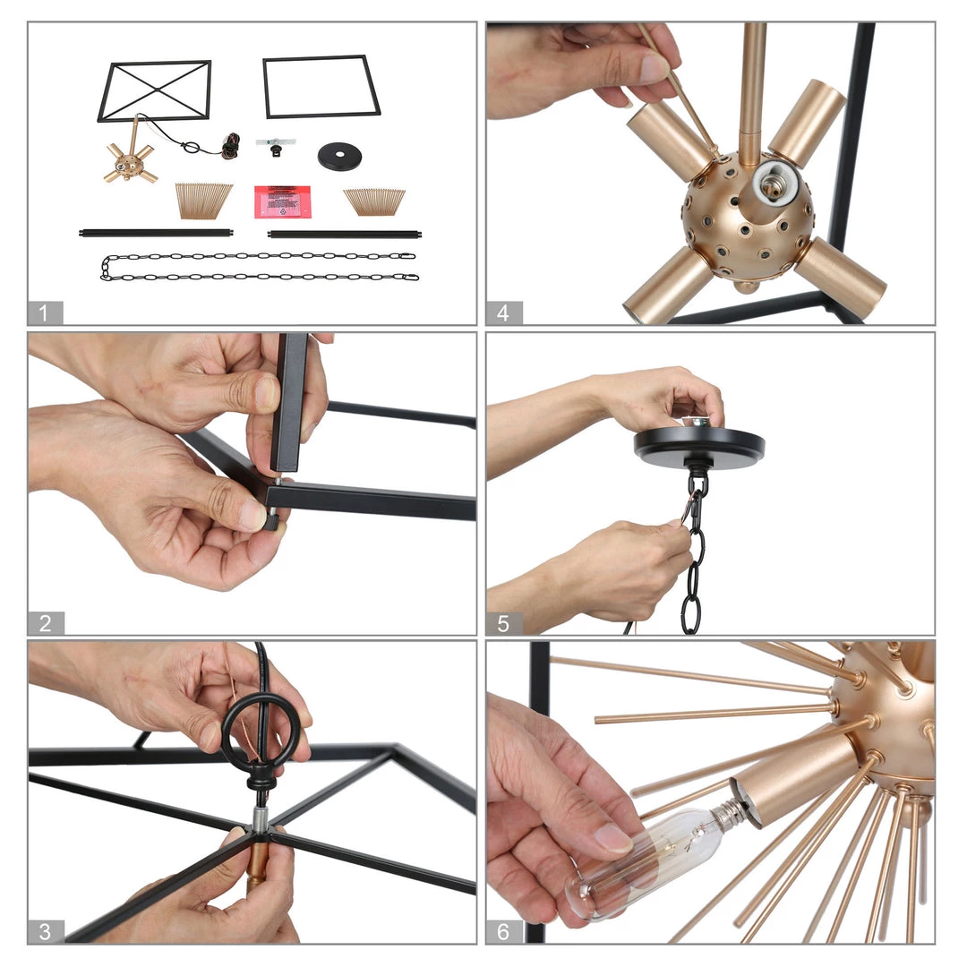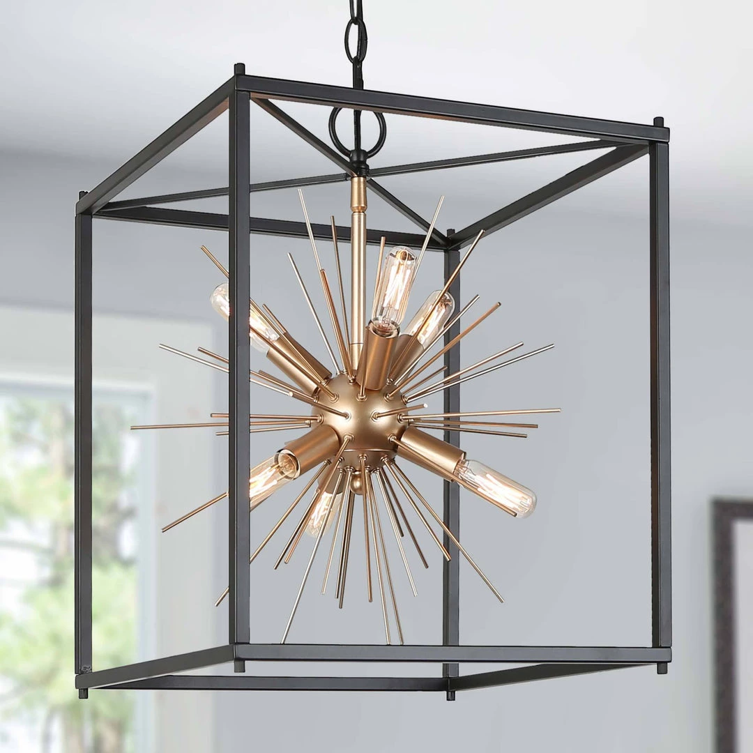 Creating a striking ambiance with this unique and playful shape and refined finishes of this Metal Star Cube Pendant. The radiating aged gold stand creates drama, while the polished black frame instills a tinge of classic vibe to the piece. Perfect for adding some flare to modern, industrial, and eclectic rooms.