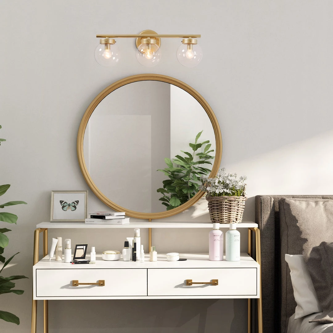 With the simplistic, elegant, and current design, this rose-gold vanity is versatile to mesh in any design. The clear glass design allows adequate light for your dressing room or your bathroom area – a great combination of functionality and aesthetics.