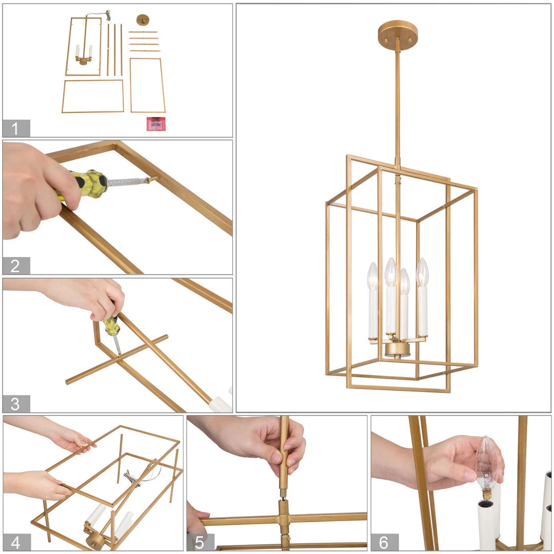 This transitional styling will be a welcoming touch in an elegant foyer or kitchen. Simplistic and strong paints the personality of this chandelier to make a statement in your home. The golden finish and the geometric design will complete your modern and luxurious atmosphere.