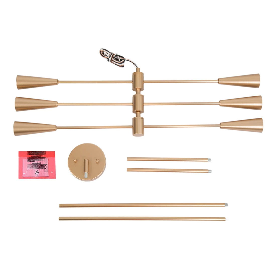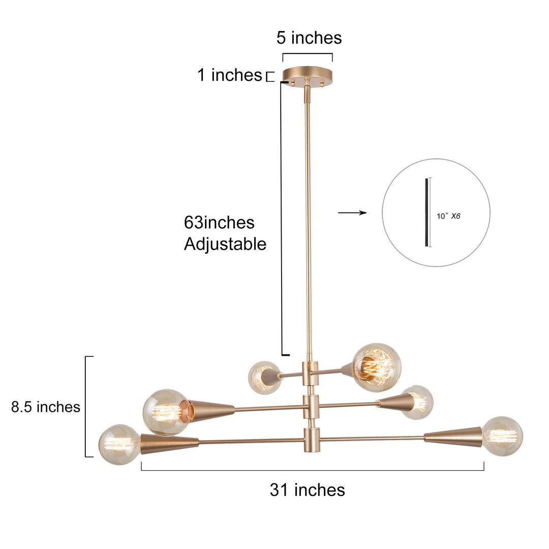 Glowing with a rich finish and an understated unique quality, this chandelier is an element that will make your spaces shine with fun and elegance. With moving arms that can be positioned in different directions, this modern light will fuse your kitchen, living room, or bedroom with fun and personalities.