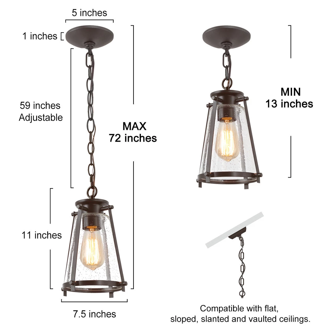 Combining the traditional profile of a tapered shade with trendy seeded glass, this Seeded Glass Mini Pendant Light brings an elevated contemporary look with a warm breath to your sweet home. It can be used as outdoor pendant light for the porch and front door that is under the eaves.