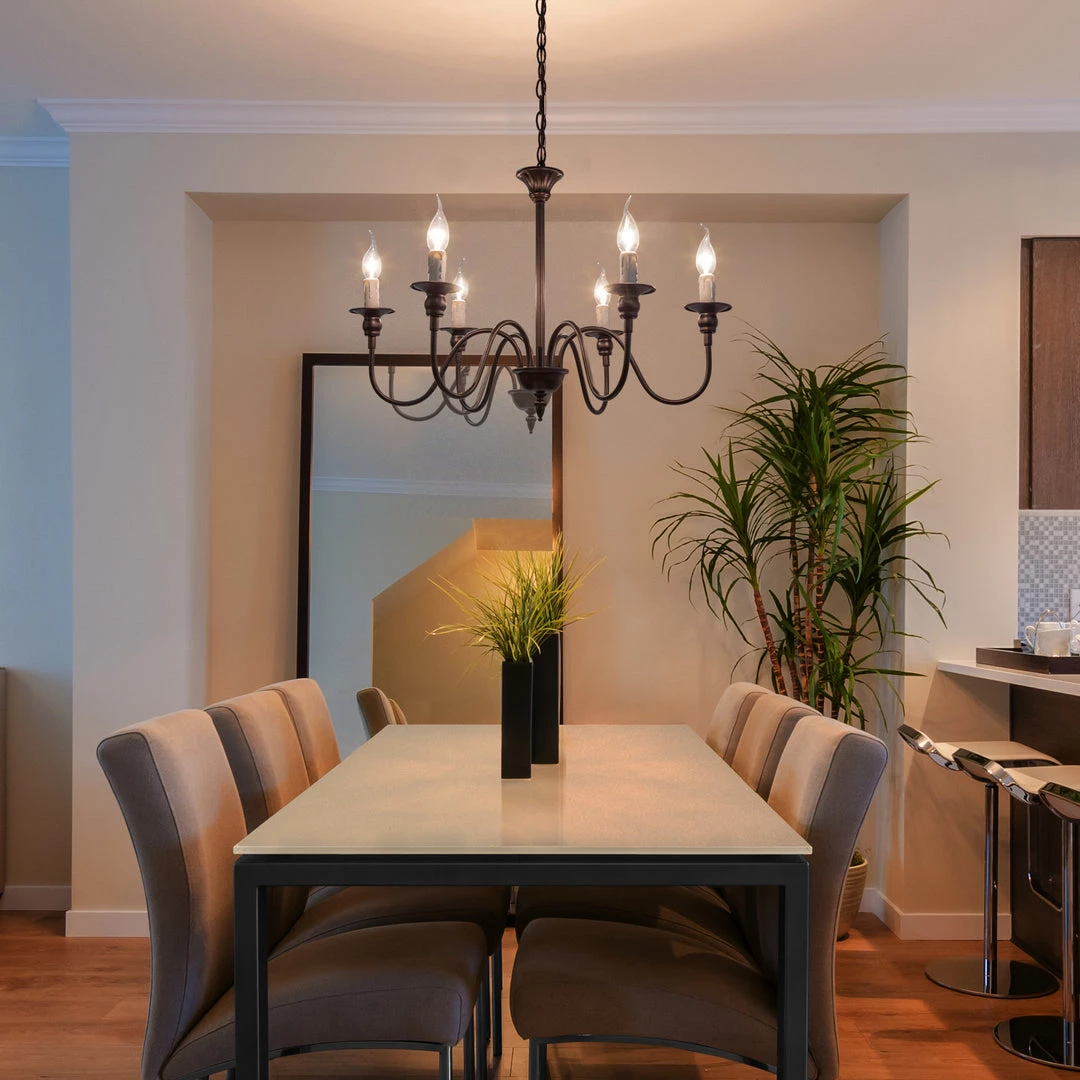 This beautiful, classic chandelier perfectly complements a wide range of styles from modern to French country. The seamless dark brown arms exude strong modernity, mixing with the French aura from the white delicate candle bulbs. It will instantly make a statement wherever it is. Ideal to be hung over your dining room table, bedroom, living room…etc.