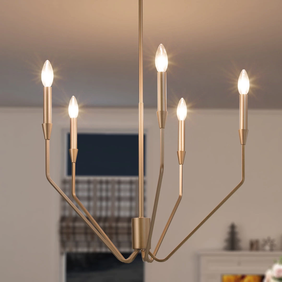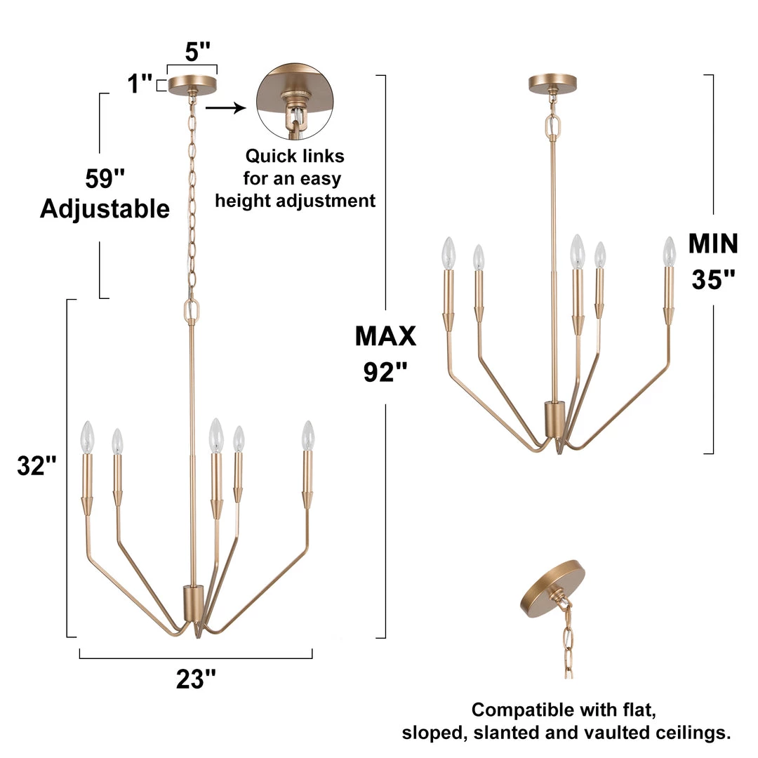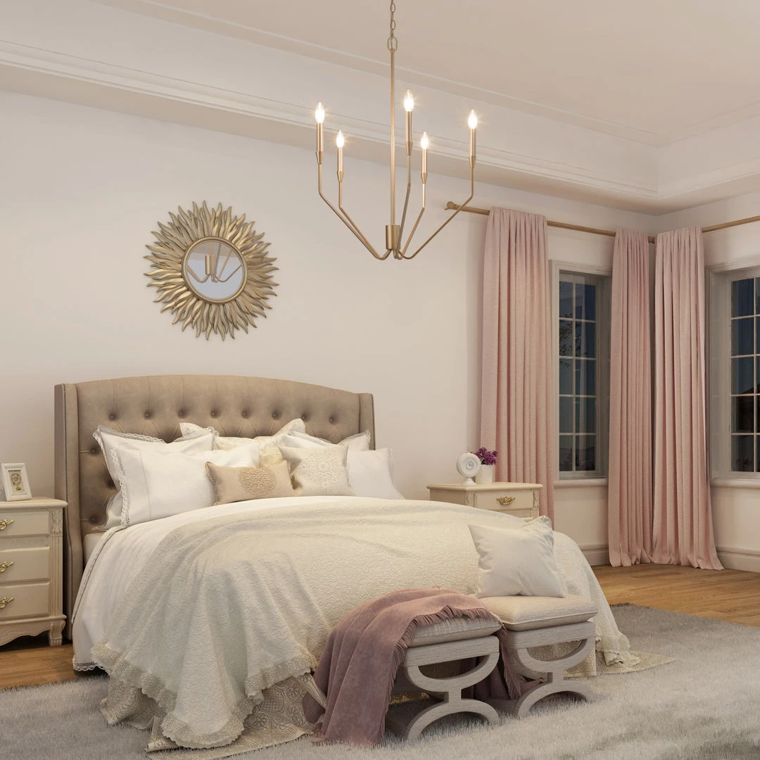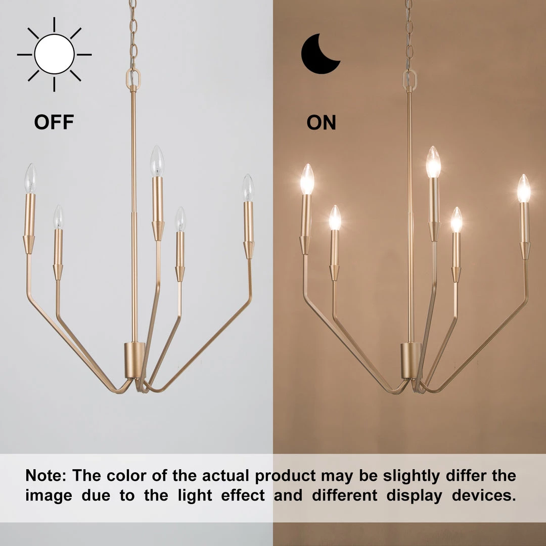 This simplistic champagne chandelier exudes understated luxury with modern sense of design. This art-piece streamlines the silhouette and reshapes it with lines and a polished gold veneer. It is the ideal lighting piece for your lounge, kitchen and living room.
