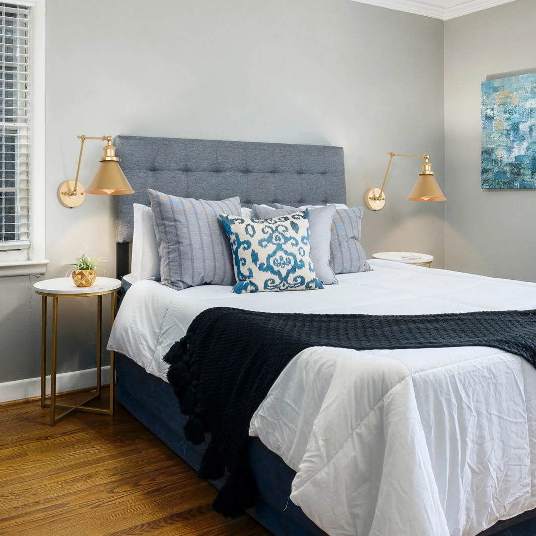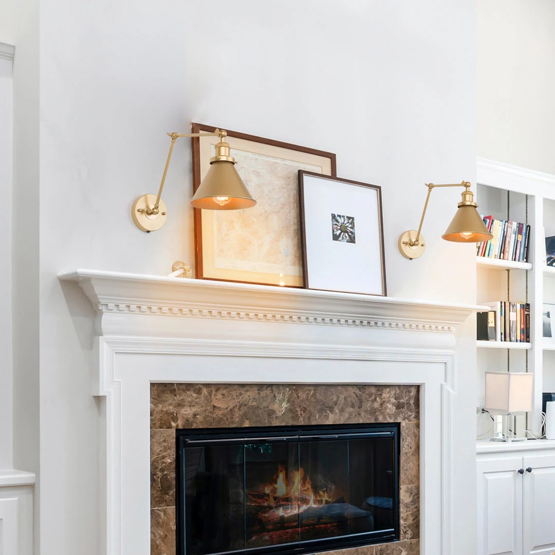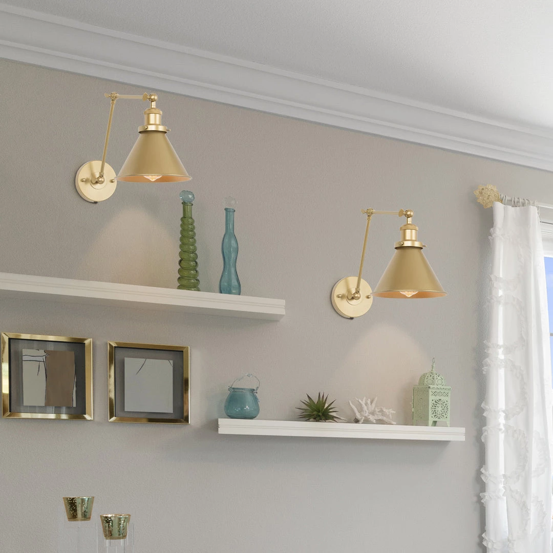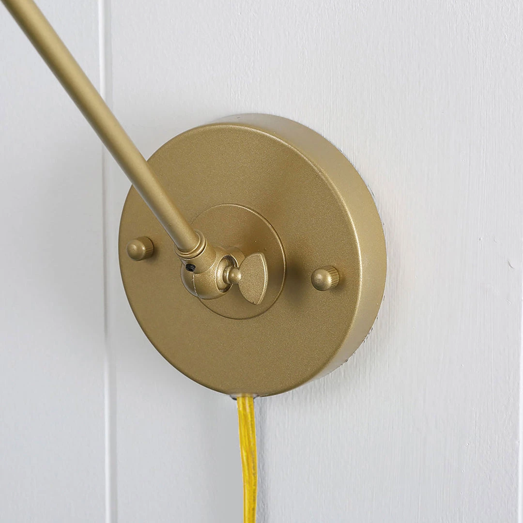 2-in-1 design allows you to install it as a plug-in or hardwire as your need for a long-lasting look. It may hang on a sloped wall or ceiling. Patent swing arm and brass joint make it easy to adjust up and down (not side to side) and direct light wherever you need them most.