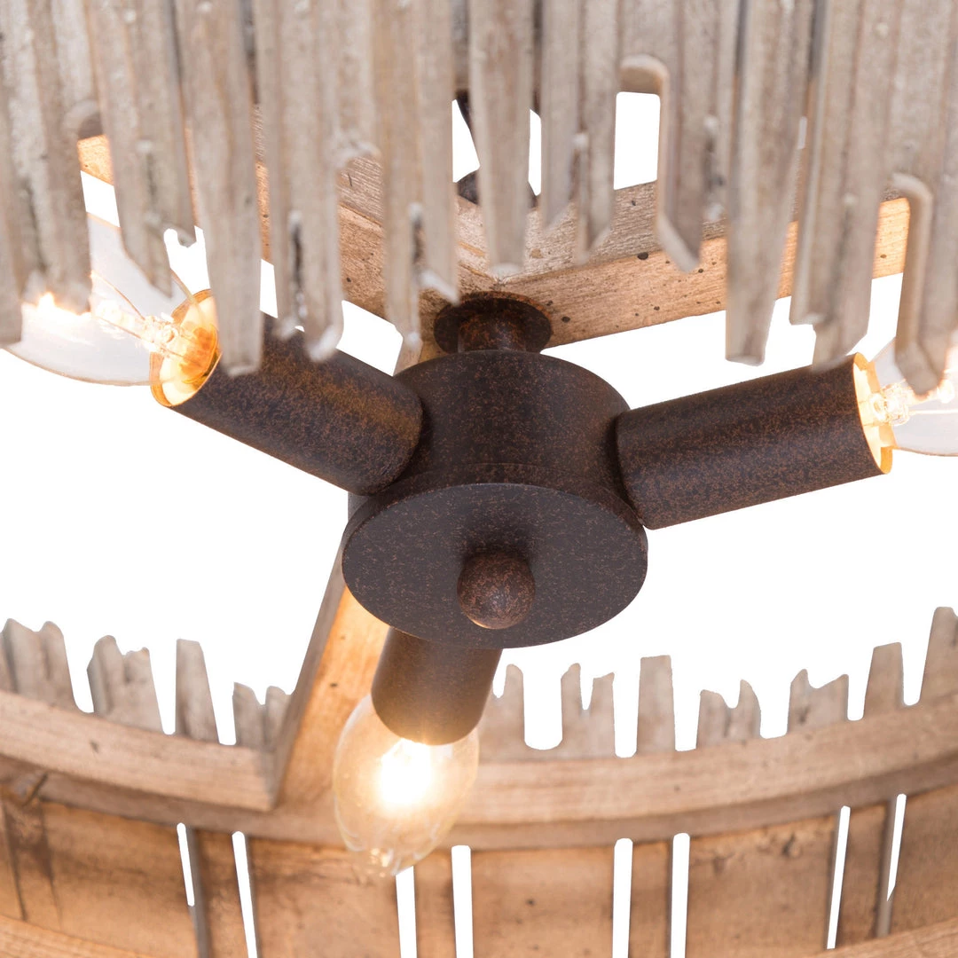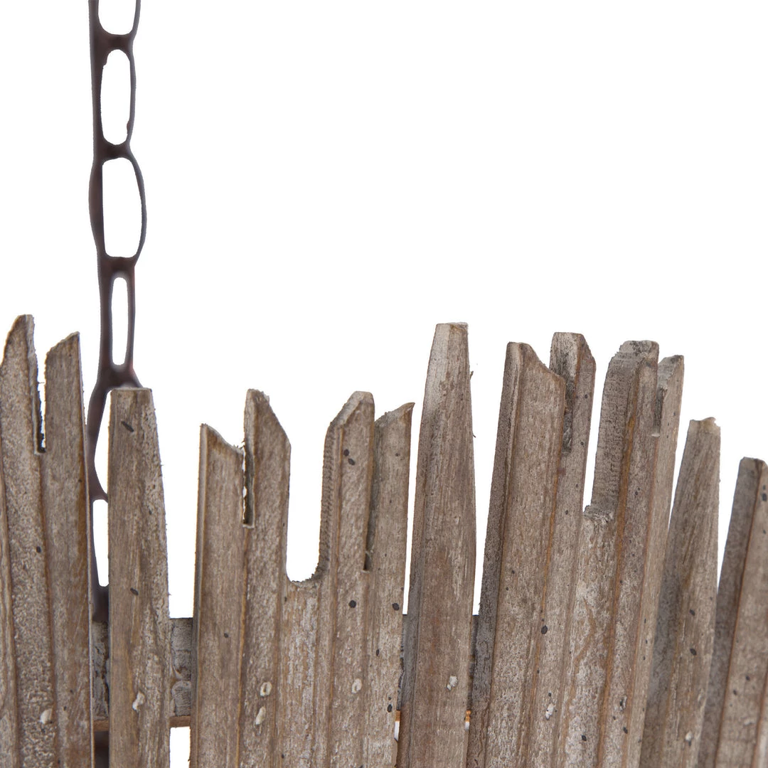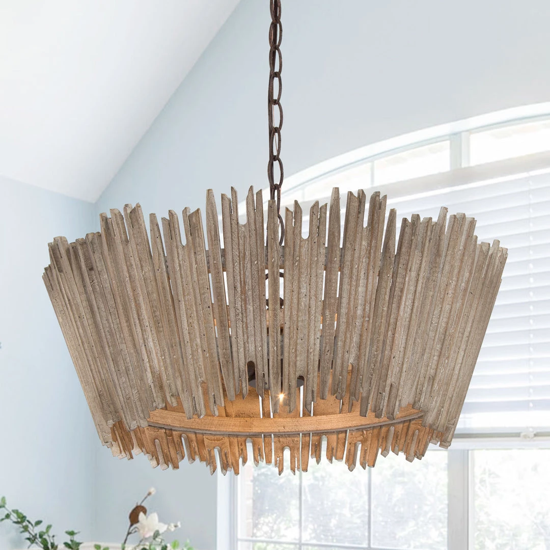 Incorporate this rustic urban pendant in the living room, bedroom, or dining room for a touch of farmhouse vibe and modernity. With grey-washed natural wood stripes combined together, this pendant gives off a strong earthy feel that adds an edgy note to your spaces.