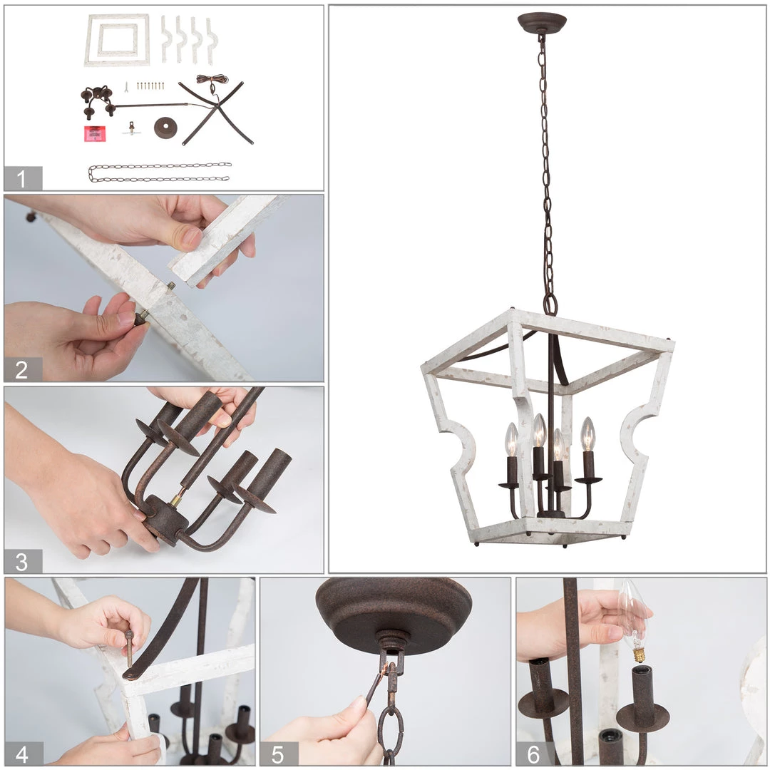Chic with a boxy silhouette and minimalist design, the 4-light wooden chandelier will be an awe-inspiring addition to your contemporary farmhouse or rustic home. The combination of the cage-shaped wooden frame and the dark-brown metallic stand is transformed into this unique piece that is versatile and truly gorgeous. The open-frame design allows the light to diffuse gently through your space — the ultimate combination of functionality and aesthetics.