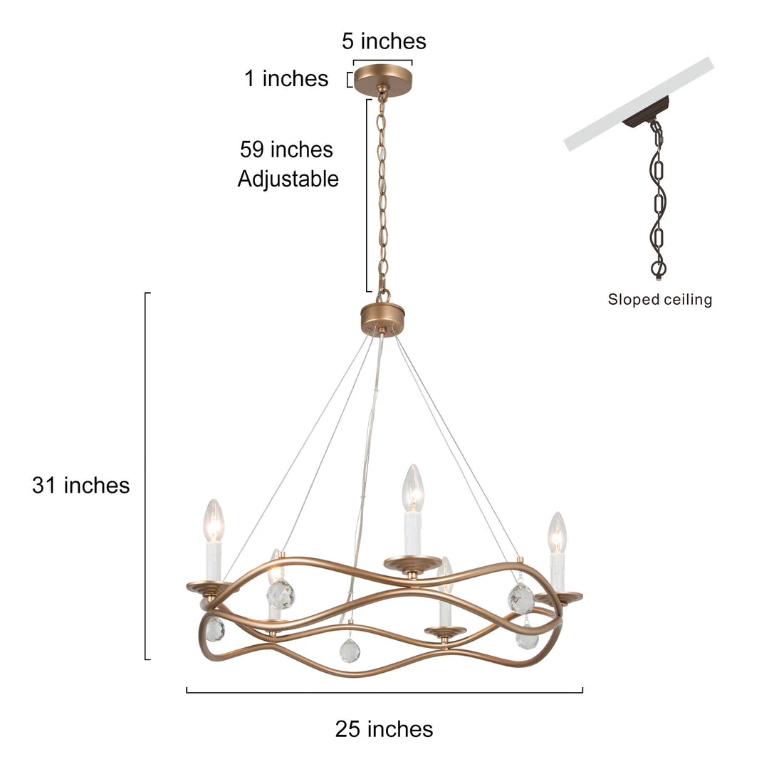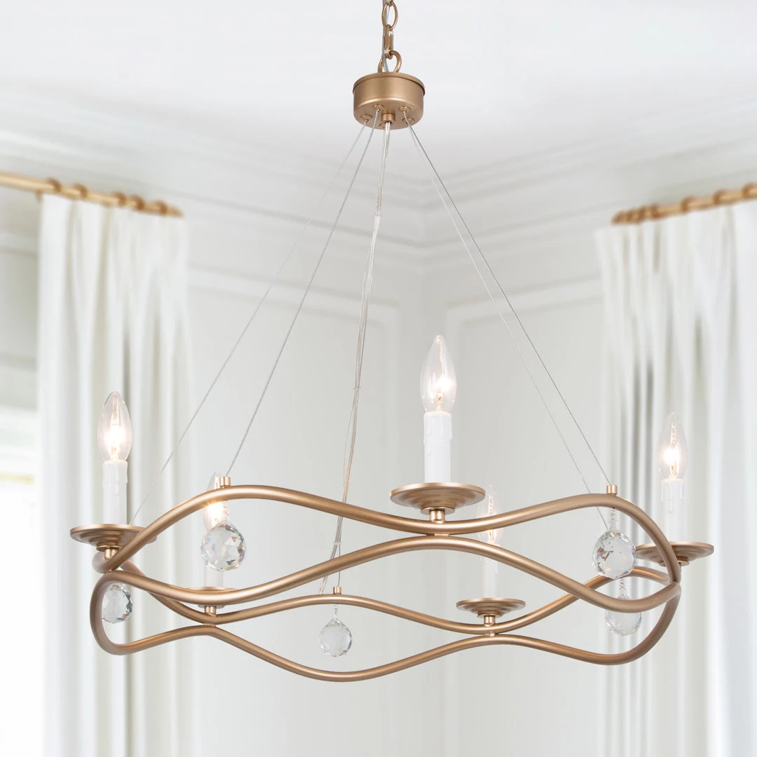 This golden wavy geometric shape chandelier brings a sense of indulgence and uninhibited beauty, and meanwhile it has a graceful and luxurious design, which is intertwined to bring an ingenious charm to your home design style. Five forged candles are supported by golden candelabra, combining the wavy geometry of design, shining your room with this effortless fixture.