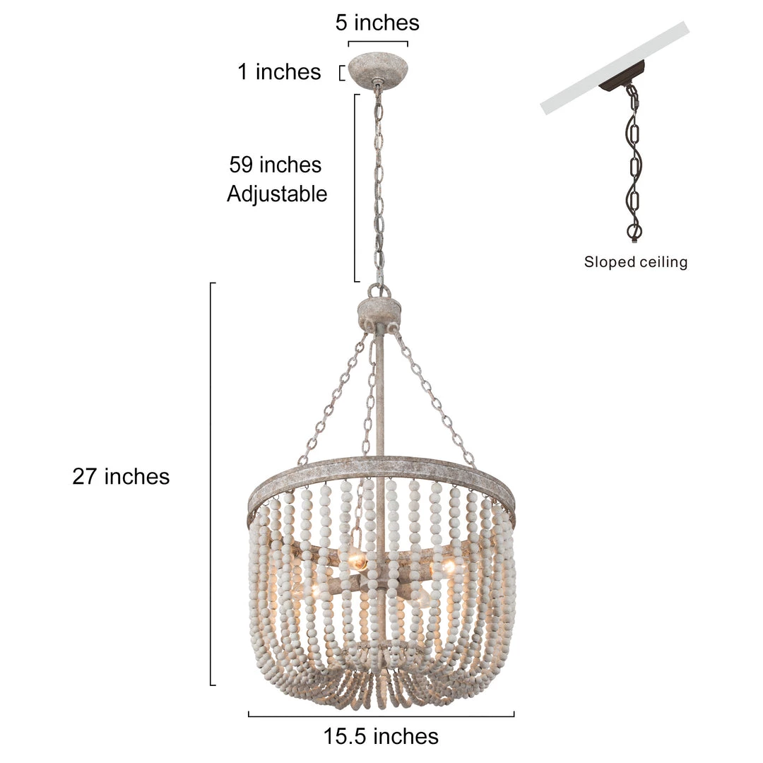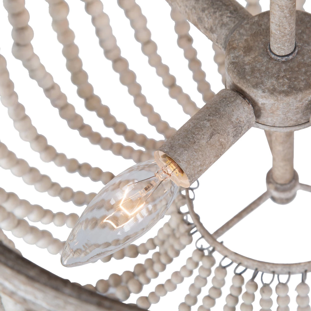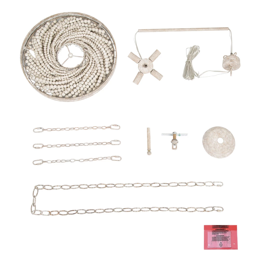 This White Farmhouse Wood Bead Chandelier is a vintage take on the farmhouse style. Themes of vintage farmhouse and rugged lodge with a hint of glam all come together in the makes of this piece. Surely be a lit gem in the mix of your home decor interior, this piece is perfect for living room, bedroom or kitchen.