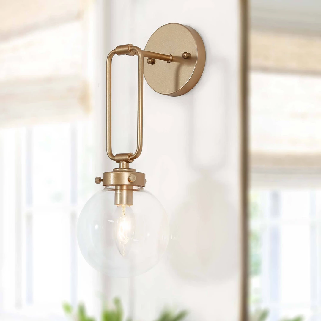The best choice for industrial or modern interiors and exteriors, this glass globe walling light will inject your modern space with chicness and texture. The elegant transparent glass and gold metal bars complement each other in a stylish way. This clean and contemporary wall light creates a charming and fashionable look.