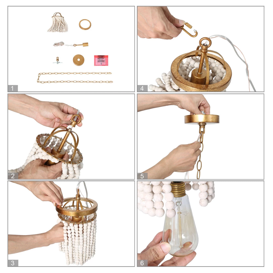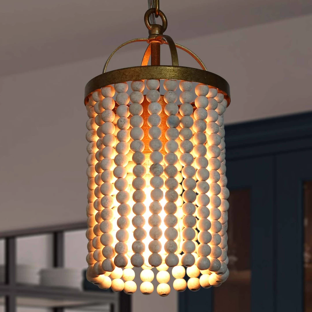This understated style provides a soft modern look for most any room. With strings of wood beads hand-crafted with a rustic feel, this Wood Bead Pendant blends the vintage charm of rustic French elements with today’s love of modern clean shapes.